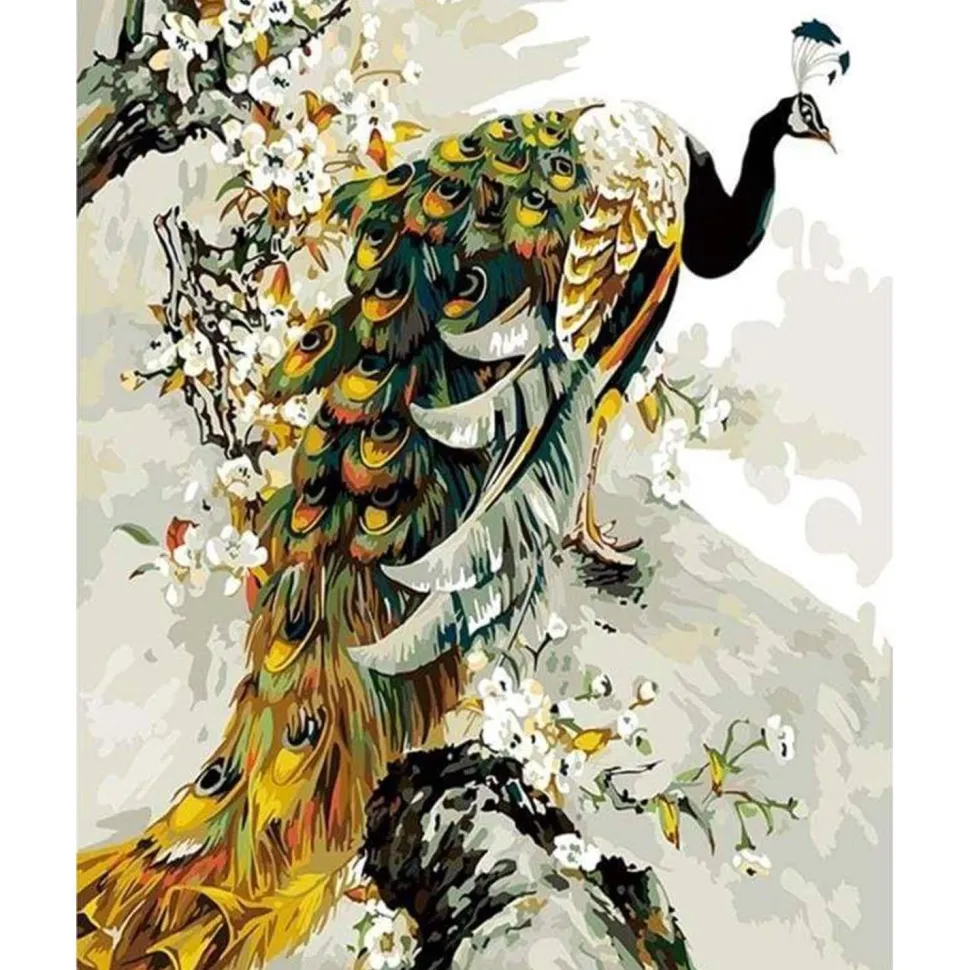Caractéristiques détaillées : Peinture au numéro : Paon doré – sans châssis en bois
