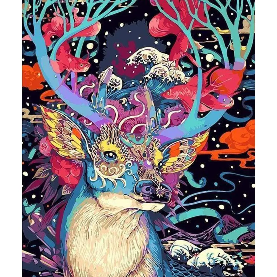 Peinture au numéro : Renne de Noël Moderne – sans châssis en bois