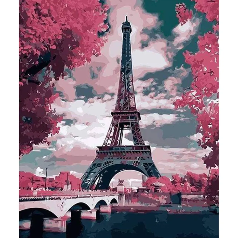 Caractéristiques détaillées : Peinture au numéro : Tour Eiffel au Printemps – sans châssis en bois