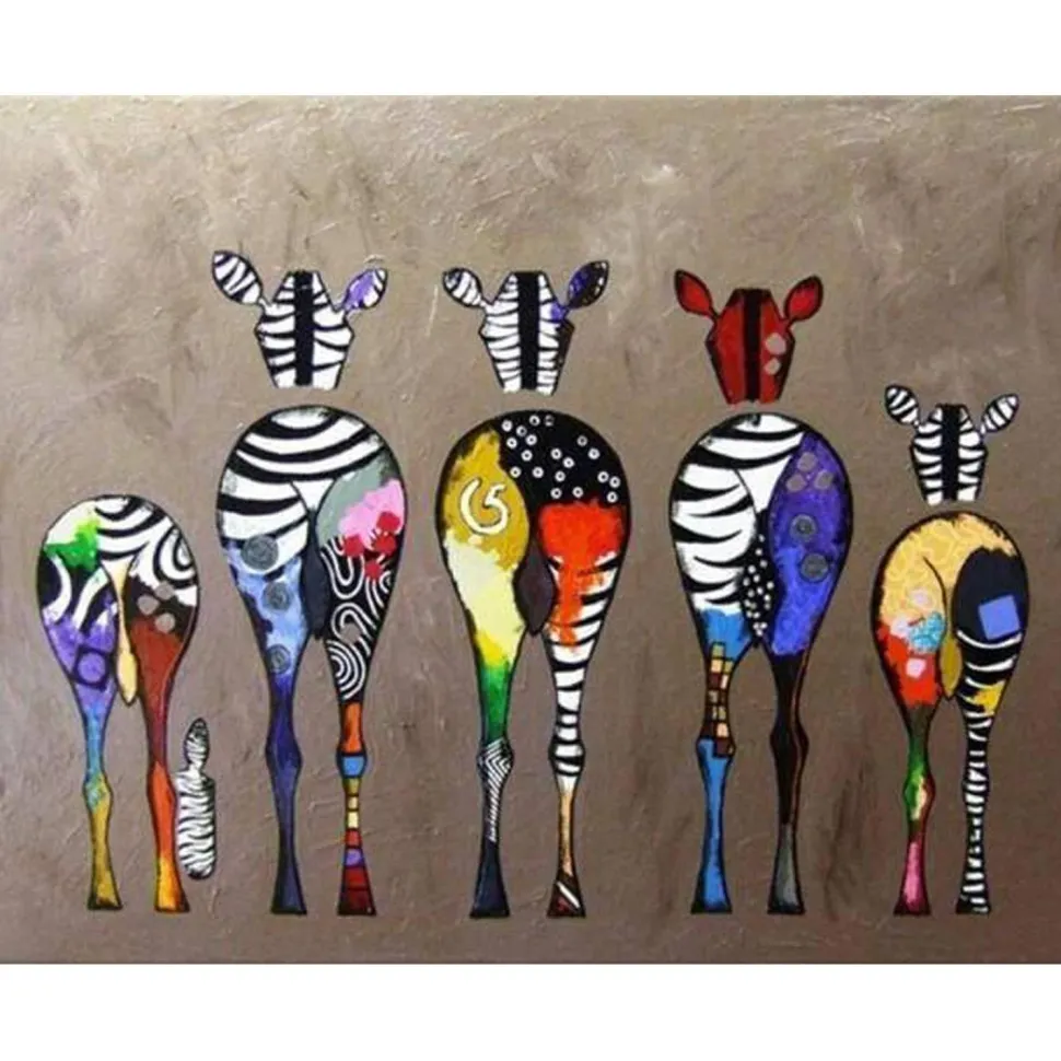 Caractéristiques détaillées : Peinture au numéro : Zèbres de dos – toile tendue sur châssis
