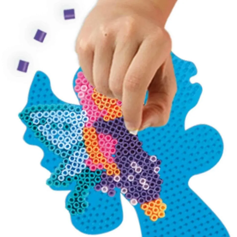 Contenu : Socle à perle thermocollante Fée, 1200 perles thermocollantes, Autocollant à paillette, Papier à repasser.
