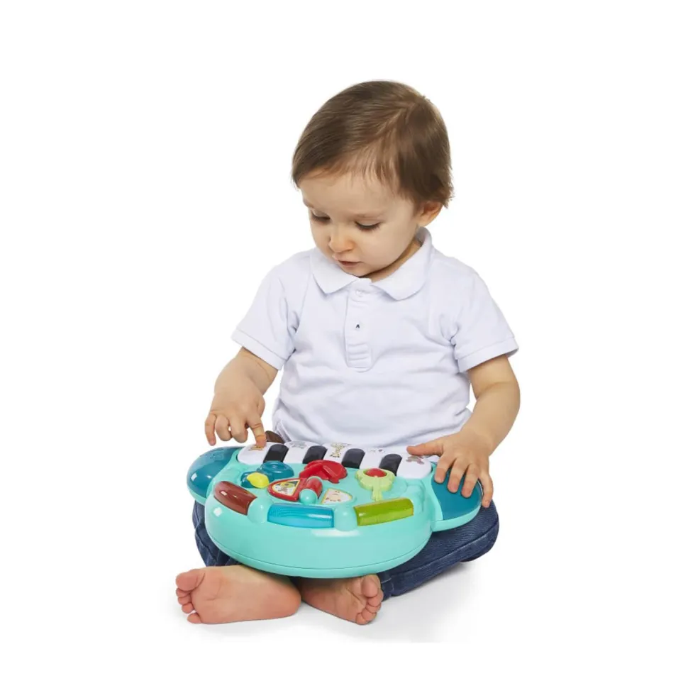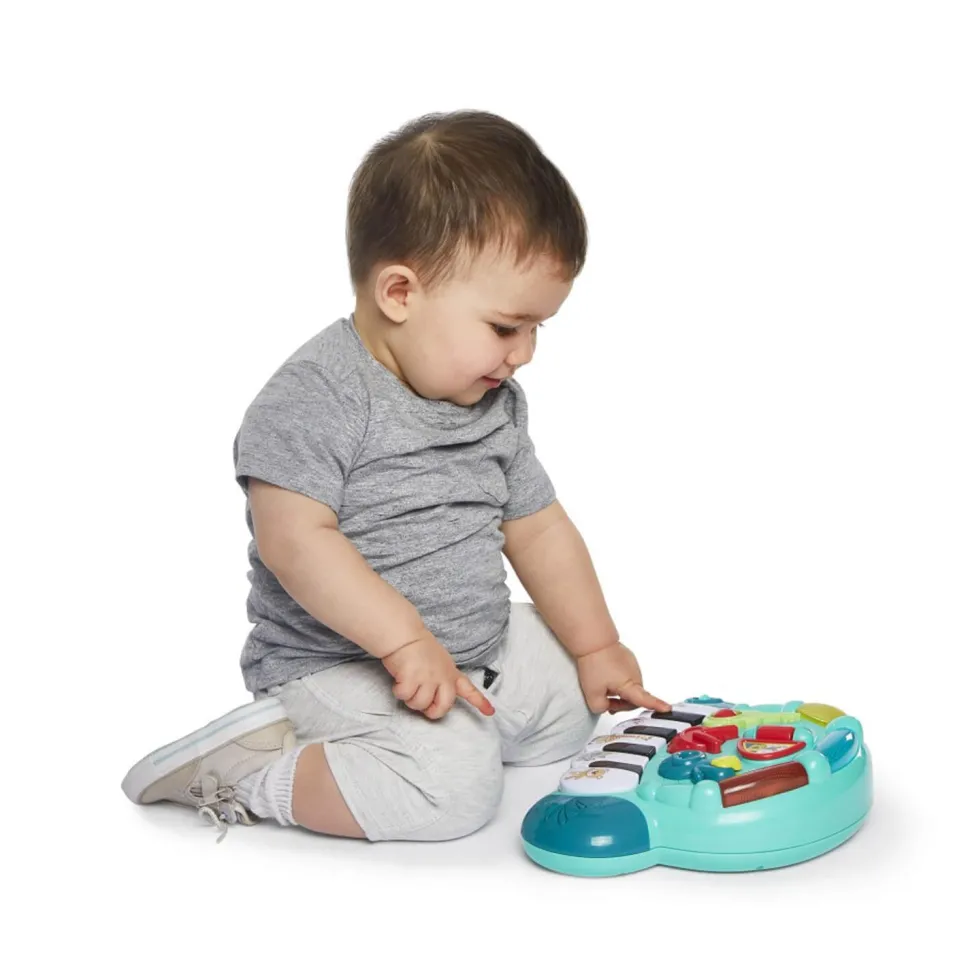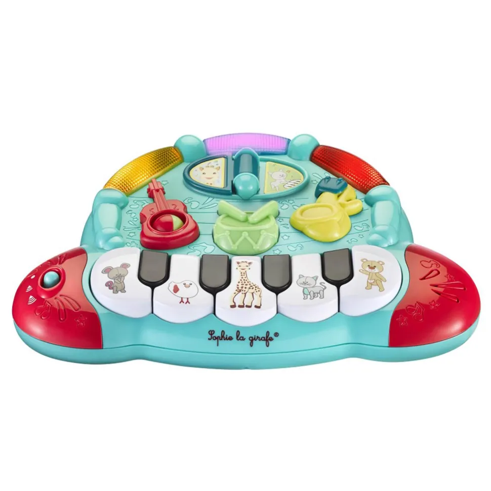 Il n’ y a pas d’âge pour découvrir la musique ! Avec ce piano lumineux et sonore à l’effigie de Sophie la girafe, bébé découvre ses premières mélodies ! Avec ses effets lumineux et sonores, le Piano’folies deviendra vitre le jouet préféré de bébé. Destiné aux enfants de plus de 3 mois, il propose 2 modes de jeu. Dans le premier mode, il suffit de toucher un instrument pour écouter les mélodies pré enregistrées. Dans le deuxième mode, bébé crée ses propres mélodies avec les 5 notes de musique du clavier, développant ainsi son ouïe et sa motricité fine.Réglage du volume sonore.Fonctionne avec 3 piles AA (fournies).Dimensions de la boîte : 25 x 34 x 8.5 cm.
