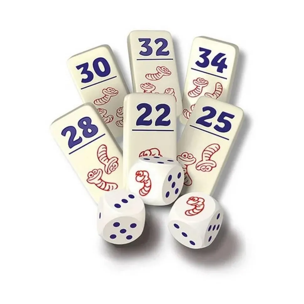 Pickomino de ZochUn jeu de dés à piquer des vers : chance, calcul, bluff et sang-froid feront gagner les plus rusés !CONTENU : 8 dés et 16 dominos très spéciaux, règle du jeu.Durée de jeu : 20 à 30 min De 2 à 7 joueurs.