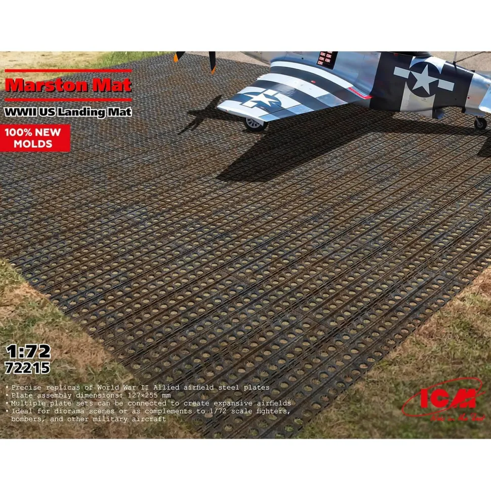 Le Marston Mat a été utilisé pour la première fois lors de manœuvres en Caroline du Nord en novembre 1941, près de Marston, d’où le nom est originaire. Le tapis Marston a été largement utilisé dans les opérations à travers le Pacifique, l’Afrique du Nord et l’Europe. Avec leur aide, les unités d’ingénierie de l’armée et de la marine des États-Unis ont pu construire rapidement des aérodromes, par exemple, mesurant 1500 mètres sur 45, en quelques jours. Après la guerre, ces planches ont été largement utilisées à des fins civiles, y compris la construction de routes et de plateformes temporaires.