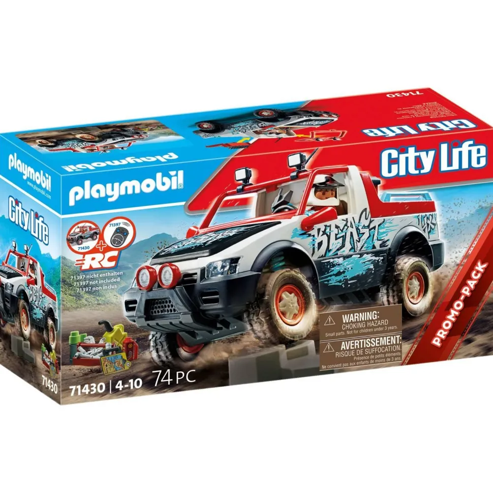 Le véhicule de rallye de la marque Playmobil est capable d’aller partout, peu importe l’état du terrain !