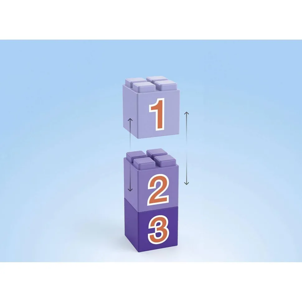 Contenu : un camion-benne avec attelage de remorque; une benne amovible et réattachable; trois blocs empilables avec des numéros imprimés de 1 à 3.
