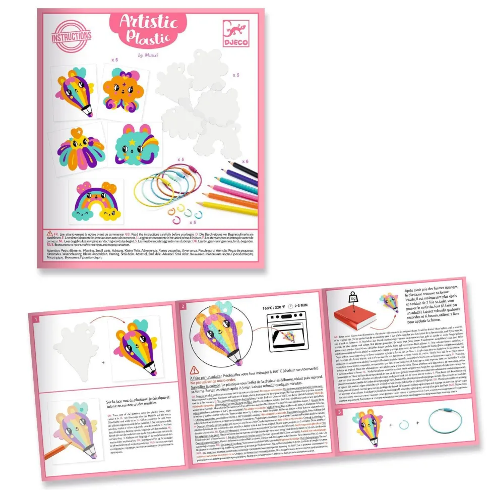 Découvrez le Porte-clefs Kawaï ARTISTIC PLASTIC de la marque Djeco, un kit créatif et amusant qui permet à l’enfant de créer cinq magnifiques porte-clefs avec des adorables personnages Kawaï, directement inspirés de l’univers japonais. Ce kit utilise plastique rétractable, un matériau magique qui se transforme de manière spectaculaire ! L’enfant commence par placer un modèle sous une forme en plastique transparente, puis il le reproduit en utilisant les crayons de couleur fournis dans le set. Une fois l’étape de coloriage terminée, il suffit de mettre les pièces au four. En quelques secondes, la magie opère : le plastique rétrécit et durcit, devenant rigide et épais, créant ainsi un porte-clefs solide et durable. Il ne reste plus qu’à attacher les réalisations aux anneaux colorés pour créer des porte-clefs uniques et personnalisés.Cette activité est non seulement spectaculaire à observer, mais elle permet aussi à l’enfant de développer sa créativité, sa motricité fine, et sa précision. Le kit inclut une attache porte-clefs avec fermoir à vis, facile à utiliser, pour fixer les créations et les transformer en accessoires pratiques et décoratifs. De plus, une notice détaillant l’activité pas à pas accompagne le kit, ce qui permet aux enfants de suivre les étapes de manière autonome. Une activité ludique et créative à partager en famille ou à offrir en cadeau !