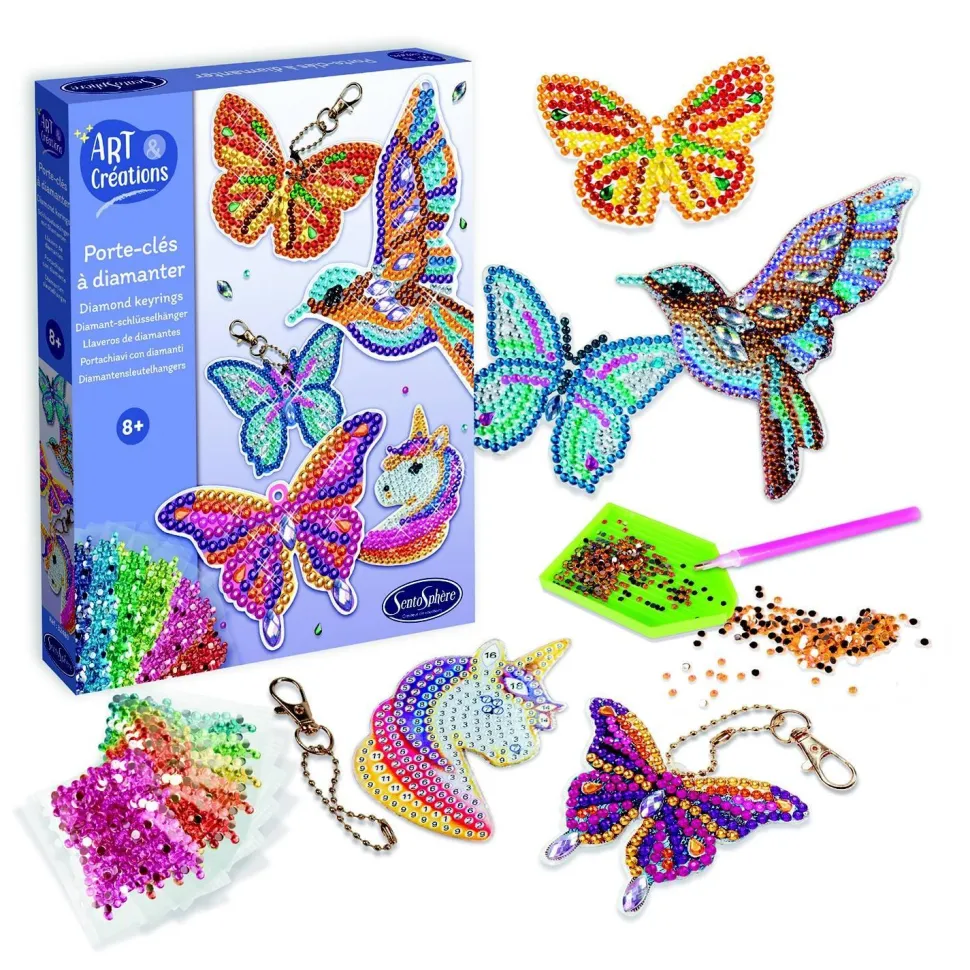 Une fois terminées, vous pourrez accrocher vos créations scintillantes à vos clés pour ne plus jamais les perdre, ou même à votre sac à main comme accessoire très tendance ! Pour soi ou pour offrir, cette activité est idéale pour les petits comme les grands.