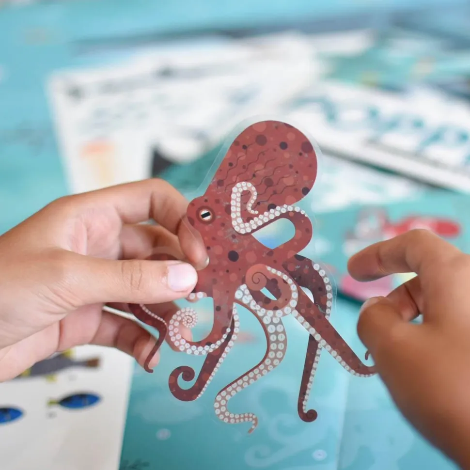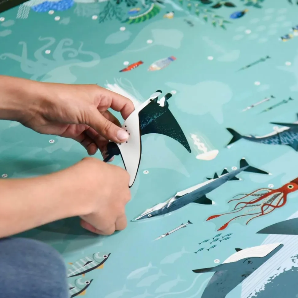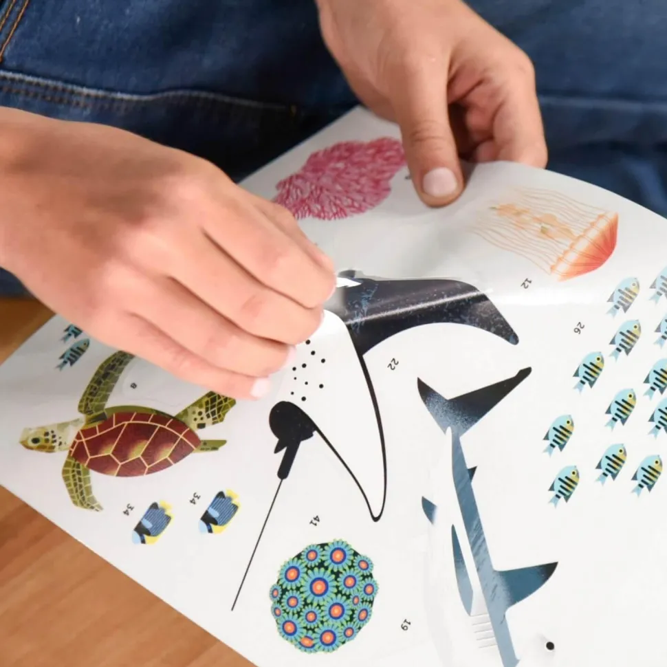 Avec cette grande affiche éducativeen stickers repositionnables, les enfants vont découvrir certaines des pluscélèbres espèces d’animaux marins. Pour coller chacun des très beaux stickers,l’enfant doit observer, comparer, manipuler : c’est ainsi qu’il apprendra sanseffort. Dans les tons de bleus et de verts, cette affiche se marie parfaitementavec tous types de décoration de chambre d’enfants. Elle décorera aussimagnifiquement un salon ou une pièce familiale.