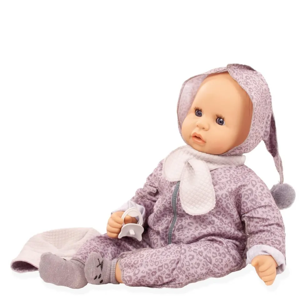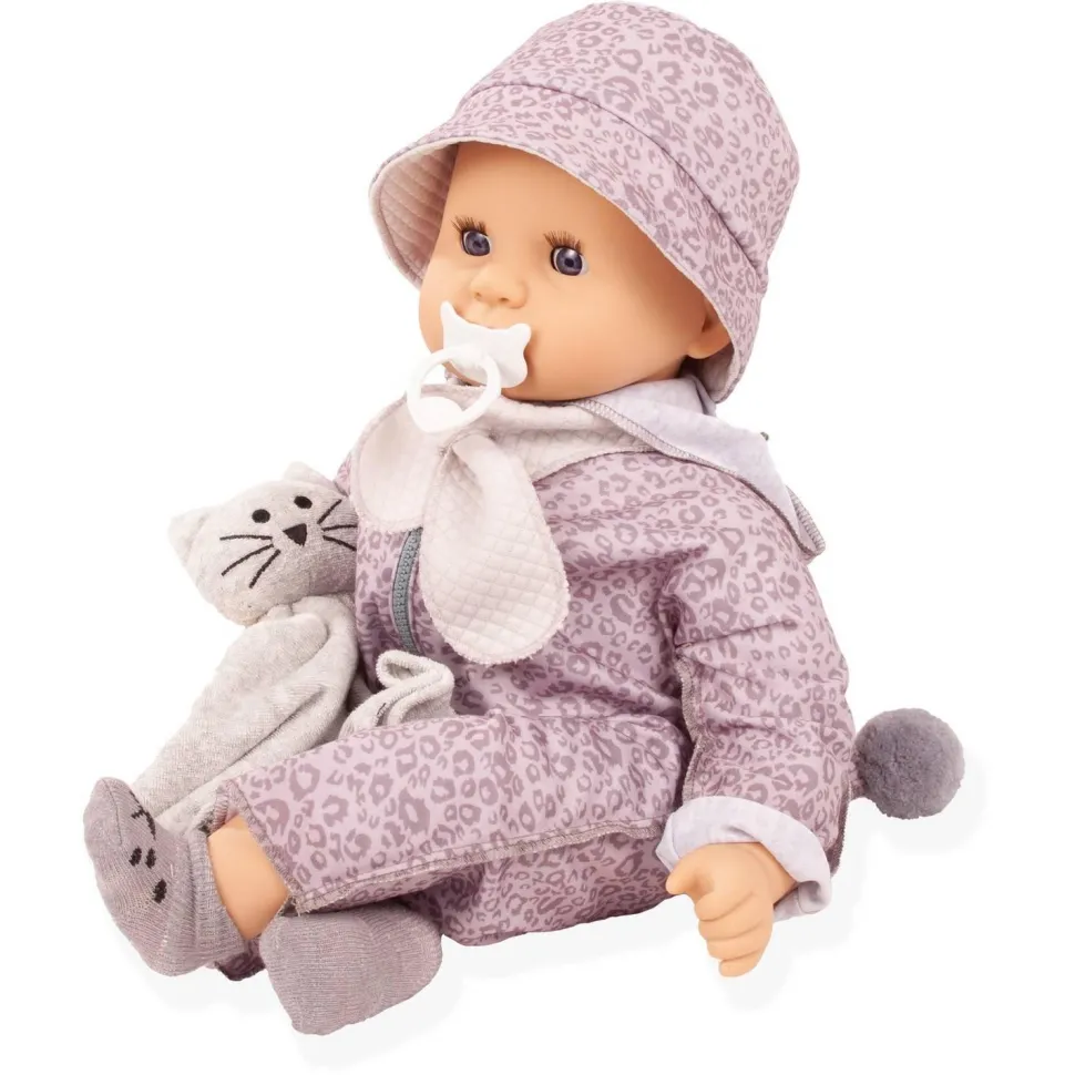 La poupée Cookie de Götz est particulièrement facile à entretenir, car elle est lavable en machine et sèche-linge – parfaite pour la vie quotidienne avec des enfants. Pesant environ 1150 g, elle repose dans les bras comme un vrai bébé, offrant une expérience de jeu particulièrement authentique.