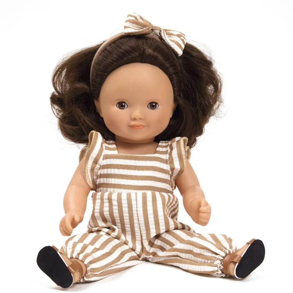 Découvrez la collection Pomea avec la poupée Lovely Rosalie de la marque Djeco. Rosalie est une poupée mannequin de 32 cm qui peut tenir debout, ce qui en fait un excellent compagnon pour les enfants. Ses cheveux châtains mi-longs, légèrement ondulés, sont faciles à coiffer, offrant aux enfants la possibilité de s’amuser à réaliser de nouvelles coiffures. Son visage, ses bras et ses jambes sont en vinyle doux au toucher, et elle ferme ses yeux marron lorsqu’on la couche sur le dos, ce qui la rend encore plus réaliste. Elle est habillée d’une jolie combinaison en tissu coton gaufré, à manches courtes et volants, apportant un look élégant et raffiné. Un serre-tête avec un nœud assorti à sa tenue complète son look, et elle porte de petites sandales qui ajoutent une touche de confort et de style. Conçue pour les enfants dès 3 ans, cette poupée deviendra vite la nouvelle amie des petits, grâce à son corps sexué fille, ses yeux dormeurs et ses cheveux en nylon. De plus, ses vêtements sont amples, dotés de scratchs pour faciliter l’habillage, et peuvent être lavés en machine à 30° pour un entretien facile.