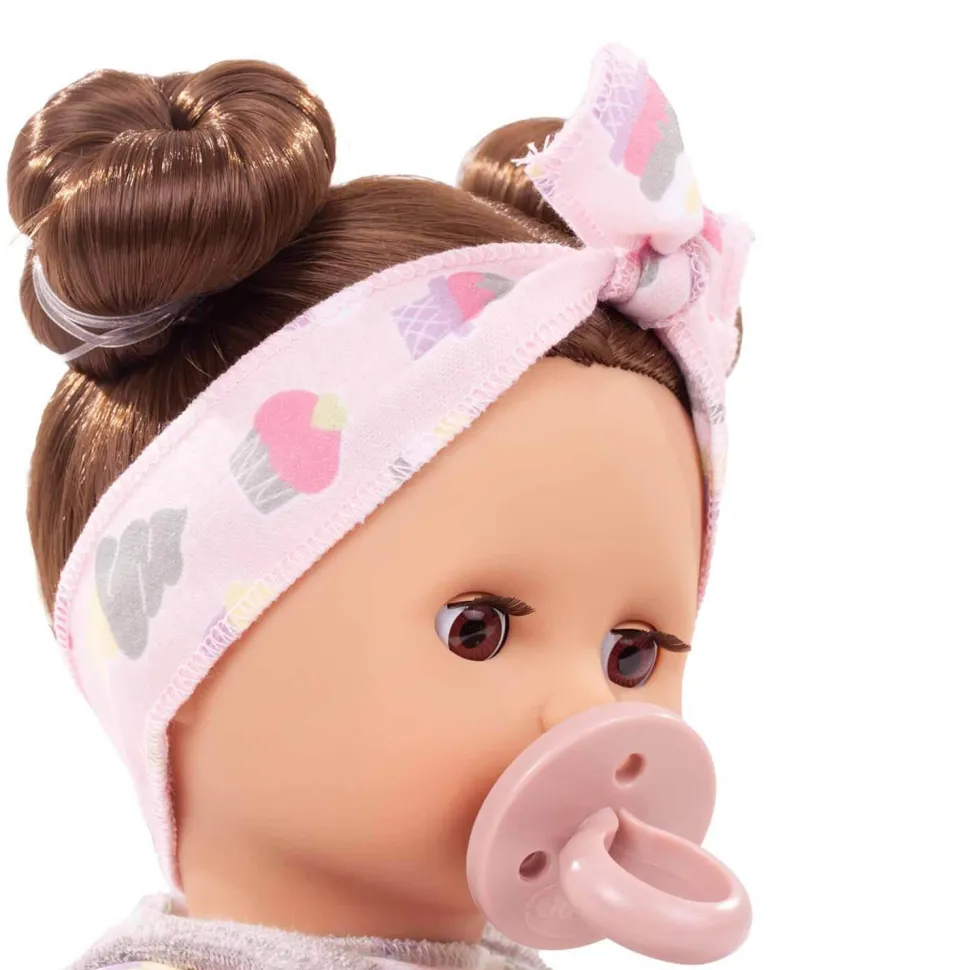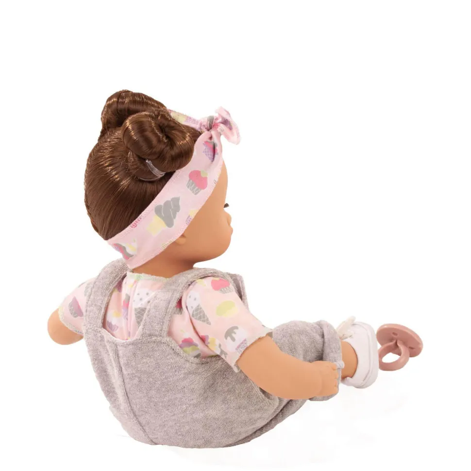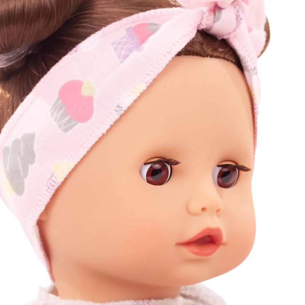 Muffin Popsicle est une jolie poupée de la marque Gotz aux cheveux châtains et aux yeux marron endormis.