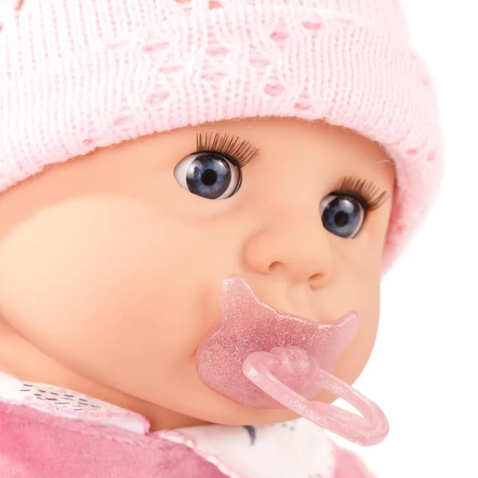 Ce poupon fait partie de la collection Cookie de la célèbre marque allemande Götz, des poupons aux corps en tissu avec des bras et des jambes en vinyle, faciles à manipuler par les enfants à partir de 3 ans. Les enfants pourront facilement les déshabiller et leur remettre leurs vêtements.