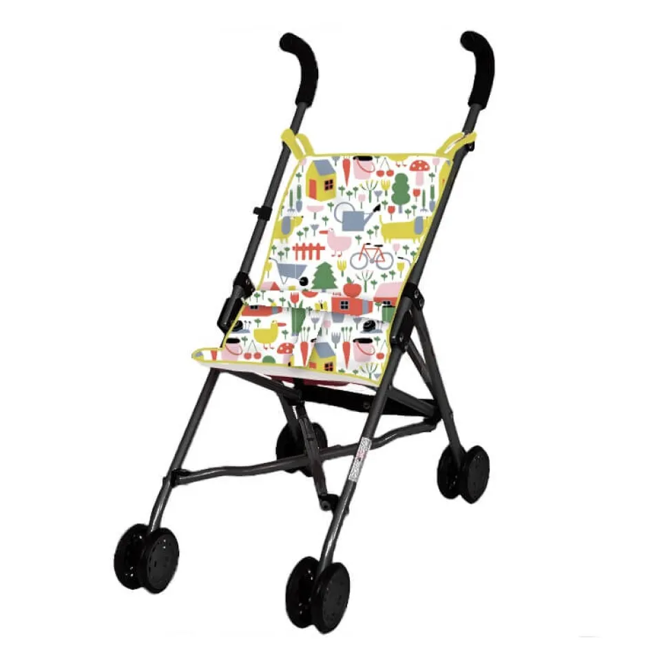 La poussette pour poupée La campagne est superbe pour pouvoir partir en balade avec sa poupée. Décorée de plusieurs motifs représentant la campagne avec des animaux tels qu’un chien ou un canard, ou encore des petites fleurs et de jolies maisons. On installe sa poupée dans la poussette, une jambe de chaque côté de la ceinture, on l’attache et hop, C’est partie pour une promenade !Les poupées et les doudous pourront faire de belles balades dans cette poussette trop chouette, un harnais est prévu pour les attacher à chaque promenade. Légère et maniable, elle permet de promener son doudou en toute simplicité.Le cadre est en aluminium mat, un loquet de sécurité est prévu pour ne pas se pincer les petits doigts, et un petit clip pour que la poussette reste bien fermée !Légère et maniable, elle permet à l’enfant de promener son doudou en toute simplicité.A partir de 3 ans.Dimension : 28 x 43 x 56.5 cm