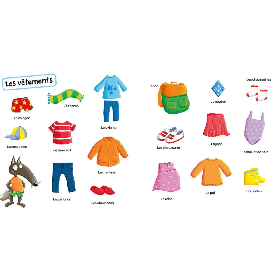 Découvrez le livre jeunesse P’tit Loup de la marque Auzou !12 grands thèmes et 200 mots à faire découvrir aux tout-petits, en compagnie de P’tit Loup ! Les objets de la maison, les aliments, les vêtements, les jouets… L’imagier est un incontournable dans les premières lectures de bébé : cela leur permet de montrer, nommer et reconnaître les éléments de leur quotidien.A partir de 1 an.