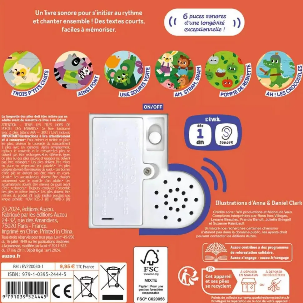 Un livre sonore pour s’initier au rythme et chanter ensemble ! Des textes courts, faciles à mémoriser.