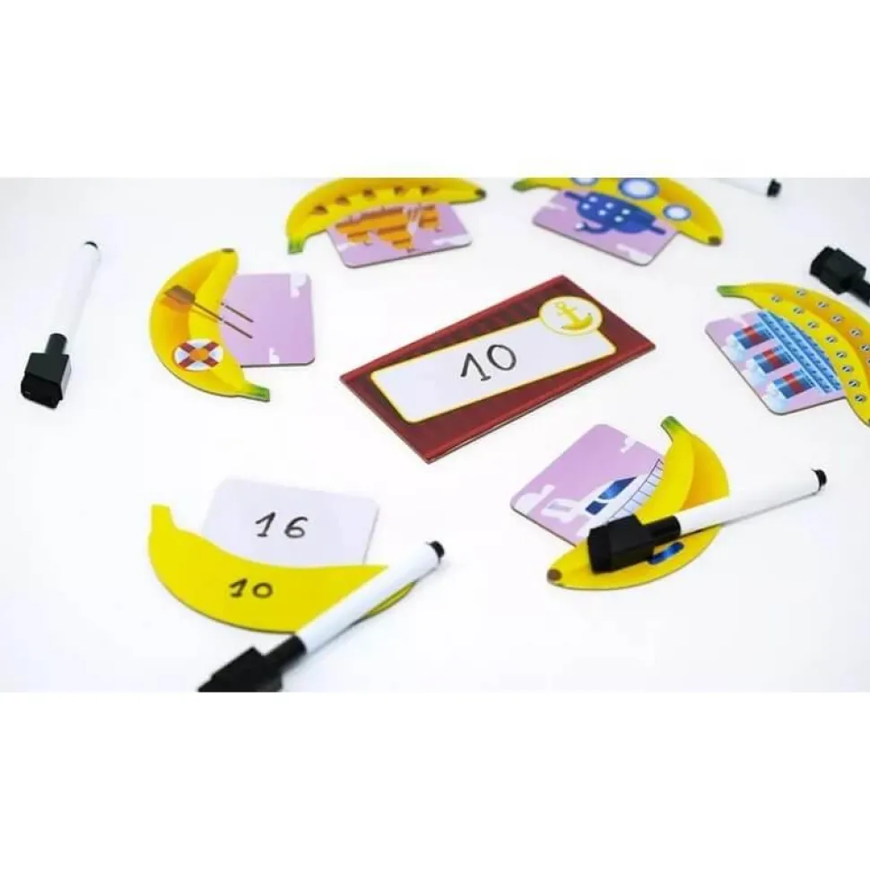 Découvrez Puerto Banana de la marque Tribuo. Dans Puerto Banana, votre objectif est d’être le premier joueur à accumuler 200 bananes. À chaque tour, un nouveau lot de fruits est mis aux enchères. Les enchères se font à bulletin secret, ce qui vous permet de parier, même de manière déraisonnable, pour être certain de remporter la cargaison. Si vous avez fait la meilleure enchère, vous remportez les bananes, mais vous devrez payer la différence entre votre offre et la seconde meilleure enchère. Ce jeu est un excellent moyen de tester vos talents de négociateur. Saurez-vous gérer vos enchères et éviter de vous faire gruger ?