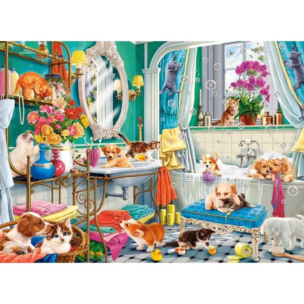 Description du produit : Puzzle 100 pièces : Bain pour animaux de compagnie