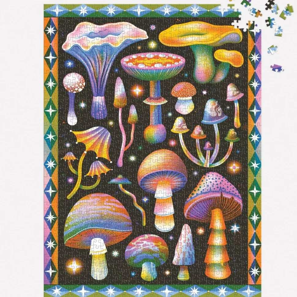 Le puzzle Champignons Cosmiques de Jasmine Floyd (1000 pièces) présente un paysage psychédélique envoûtant où la mycologie rencontre l’imagination céleste.