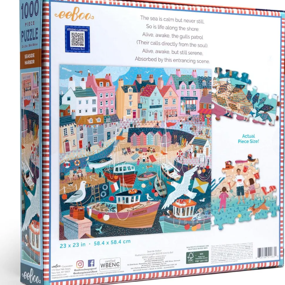 Puzzle de 1000 pièces, de la marque Eeboo.Fabriqué avec du carton recyclé et imprimé sur du papier certifié FSC® avec des encres végétales.Dimensions du puzzle assemblé : 58,4 x 58,4 cm environ.