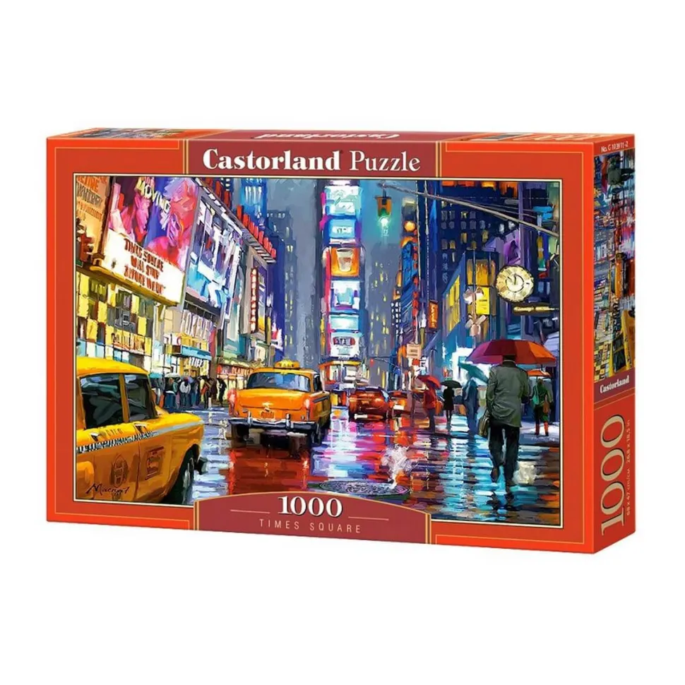 Le puzzle Times Square, New York de la marque Castorland est constitué de 1000 pièces. Il est donc d’une difficulté moyenne et est adapté aux personnes de plus de 12 ans.Times Square, New York est un puzzle représentant la célèbre avenue de New York. Vous y découvrirez les taxis jaunes qui font la réputation de la ville de la grosse Pomme. Les annonces publicitaires sur les différents bâtiments qui éclairent toute l’avenue et tous les New-Yorkais sous cette nuit pluvieuse avec leurs parapluies. Ce puzzle est une représentation d’un tableau à l’huile qui apporte tout son charme. Sa taille après réalisation est de 68 x 47 cm.Il est adapté à toute personne appréciant la ville de New York. Il vous permettra de passer de bons moments en profitant de votre passetemps et en découvrant de nouveaux visuels.Vous pouvez retrouver sur notre site différents puzzles pouvant être associés au puzzle Times Square, New York.