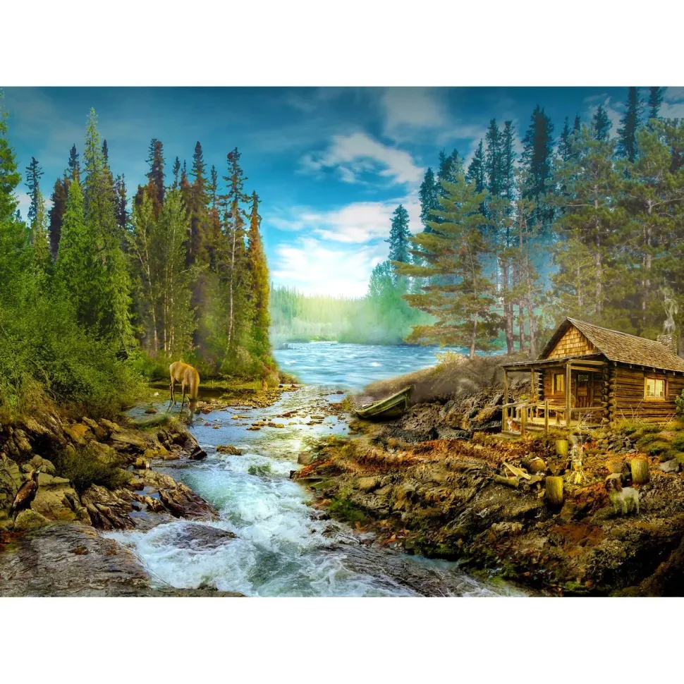 Caractéristiques détaillées : Puzzle 1000 Pièces : Une cabane en rondins au bord des rapides
