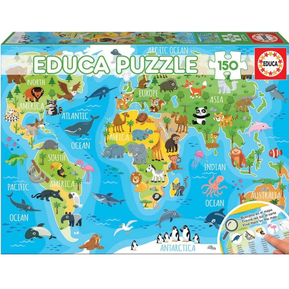 Caractéristiques détaillées : Puzzle 150 pièces : Mappemonde animaux
