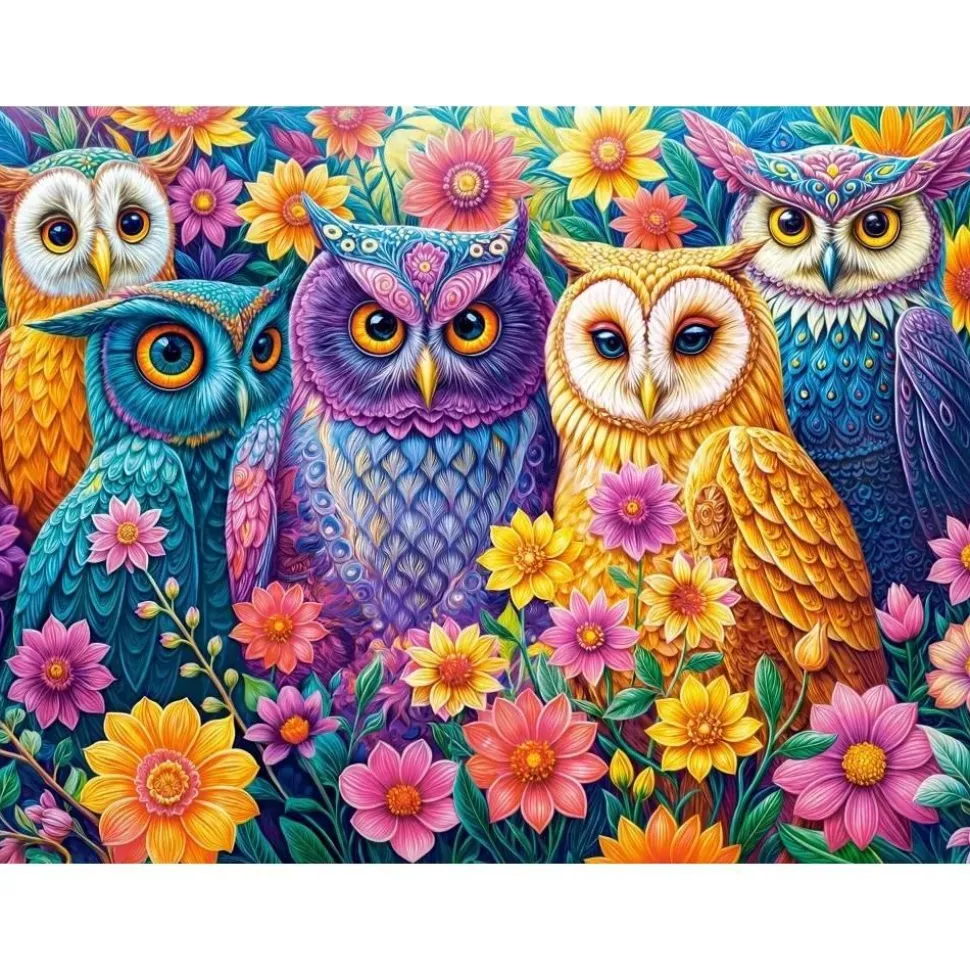 Description du produit : Puzzle 3000 pièces : Rencontre des hiboux fleuris