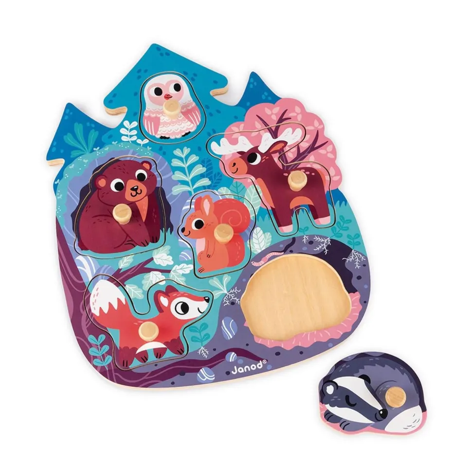 Puzzle de 6 pièces sur le thème des animaux de la forêt de la marque Janod.