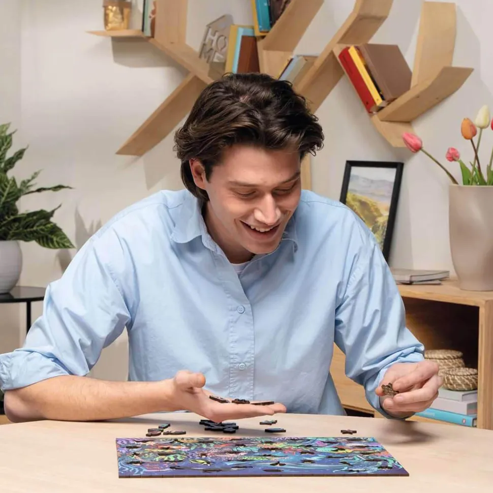 Contient 1 puzzle de 500 pièces en bois, 1 sachet kraft.