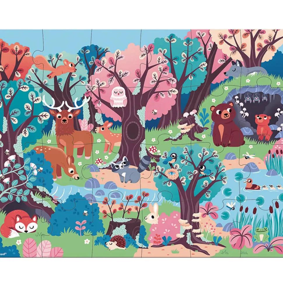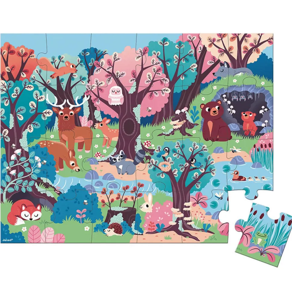 Puzzle carton de 24 pièces sur le thème de la forêt de la marque Janod.