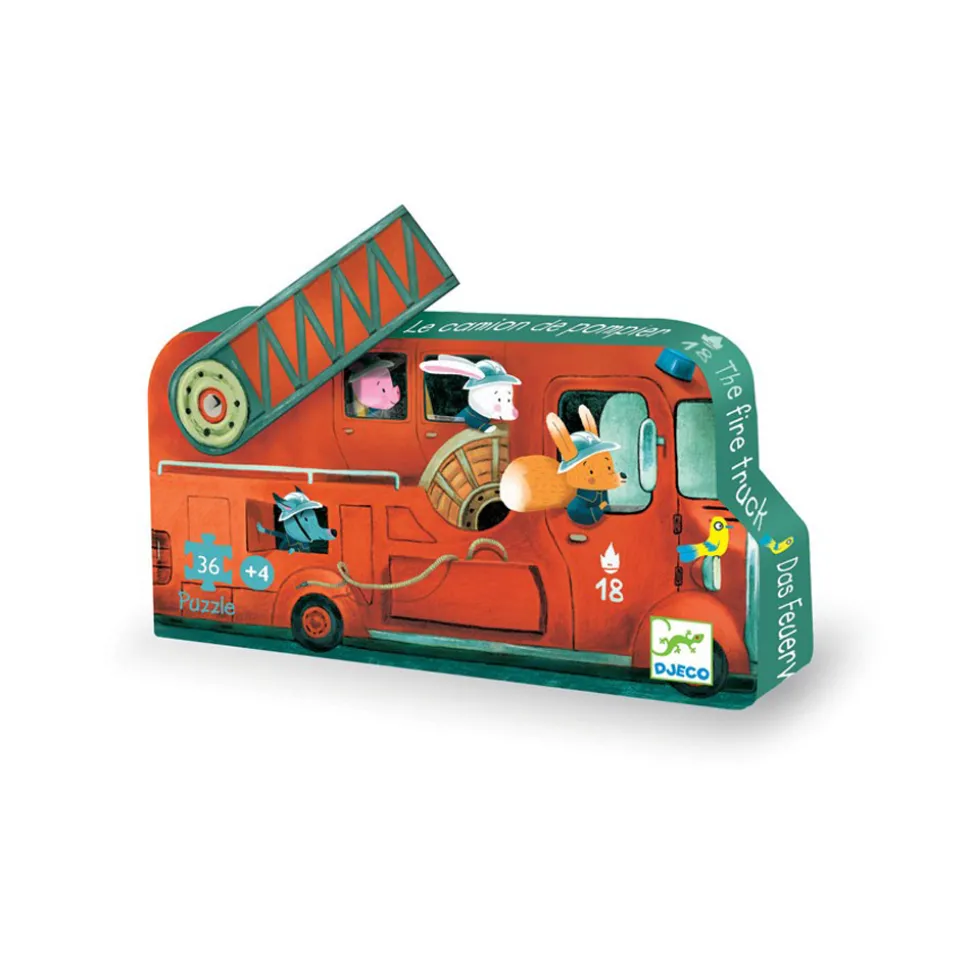 Ce puzzle invite les enfants dès 3 ans à reconstituer leur premier puzzle. Il s’agit d’une illustration colorée mettant en scène une équipe d’animaux pompiers en pleine action dans leur camion avec sa grande échelle. Ce puzzle est livré dans une jolie boîte de rangement silhouette, réalisée sous en forme du camion de pompier comme celui représenté dans l’illustration.Ce puzzle Djeco a pour thème un camion de pompier. Il est composé de 16 pièces en carton. De format carré, il mesure une fois assemblé 25 cm de longueur par 25 cm de largeur.Dimensions de la boîte : 22 x 11 x 5 cm.