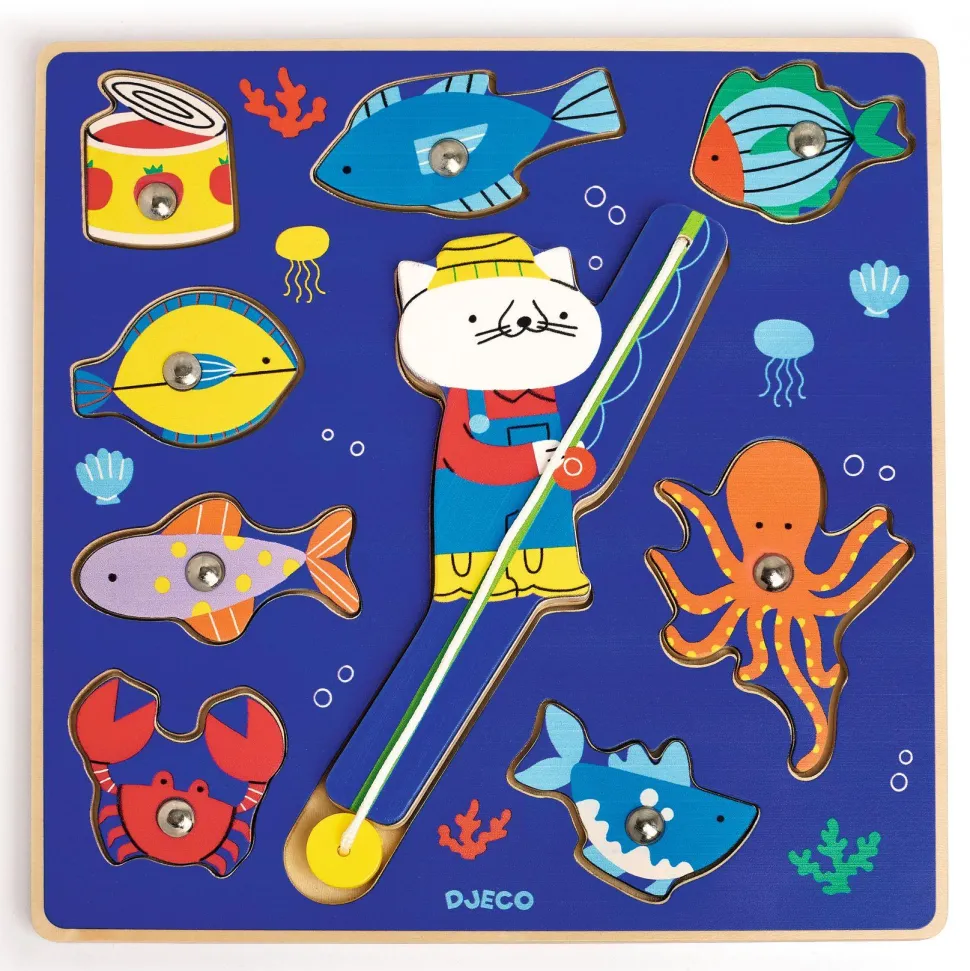 Découvrez la collection PUZZLES RELIEF avec le Puzz & Fish Color de la marque Djeco. Puzz & Fish est un jeu 2 en 1 ingénieux combinant un puzzle en bois et un jeu de pêche amusant. L’enfant utilise une canne à pêche tenue par un adorable chat aimanté pour attraper les poissons dissimulés dans la base. Une fois la pêche terminée, il replace chaque poisson à sa place pour compléter le puzzle. Ce concept original stimule la coordination œil-main, la motricité fine et la concentration. La canne, pensée pour les petites mains, est facile à saisir, et les poissons, plats et bien intégrés à la base, ne peuvent être attrapés que par l’aimant, rendant le jeu encore plus amusant et captivant. Vendu dans une jolie boîte pratique, idéale pour offrir ou pour le rangement.