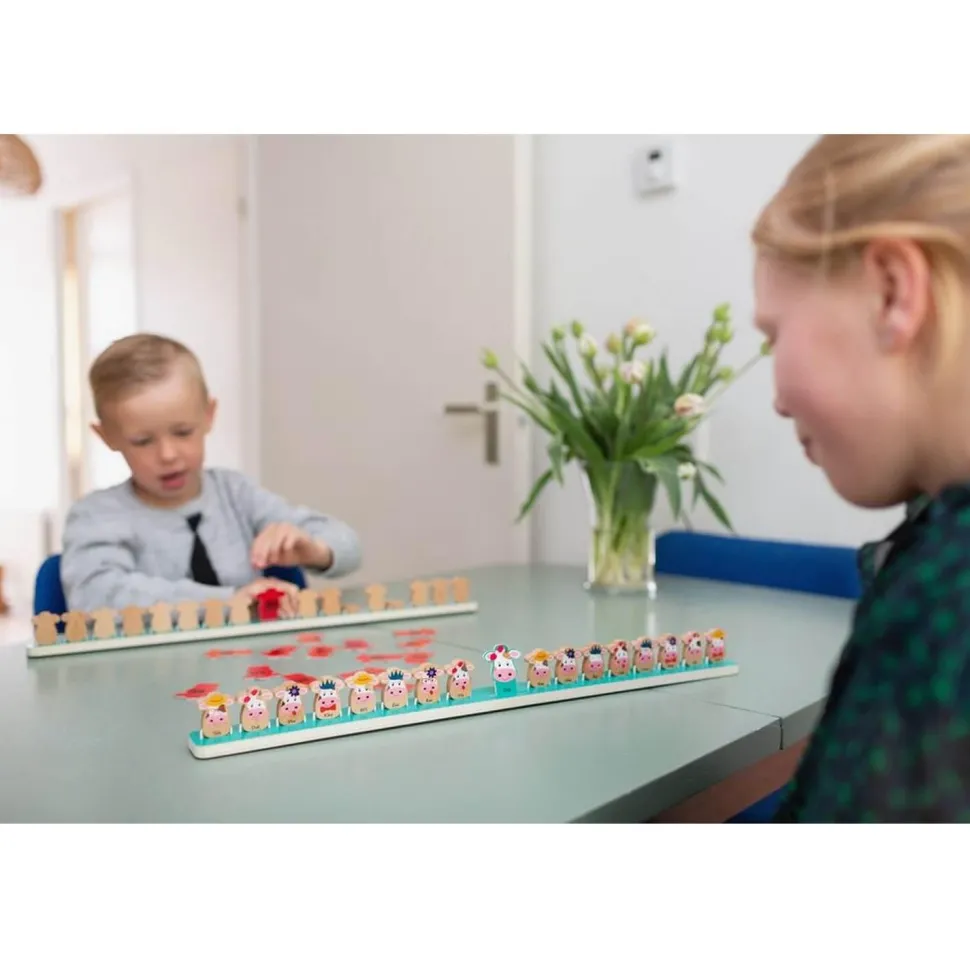 Le classique jeu Qui est-ce ? revisité dans une forme plus ludique et enfantine ! Quelle vache je suis ? reprend les mêmes principes : deviner le personnage adverse en éliminant les profils au fil de la partie. Cependant dans le jeu Quelle vache je suis ?, les personnes sont remplacées par des vaches et les présentoirs sont différents.