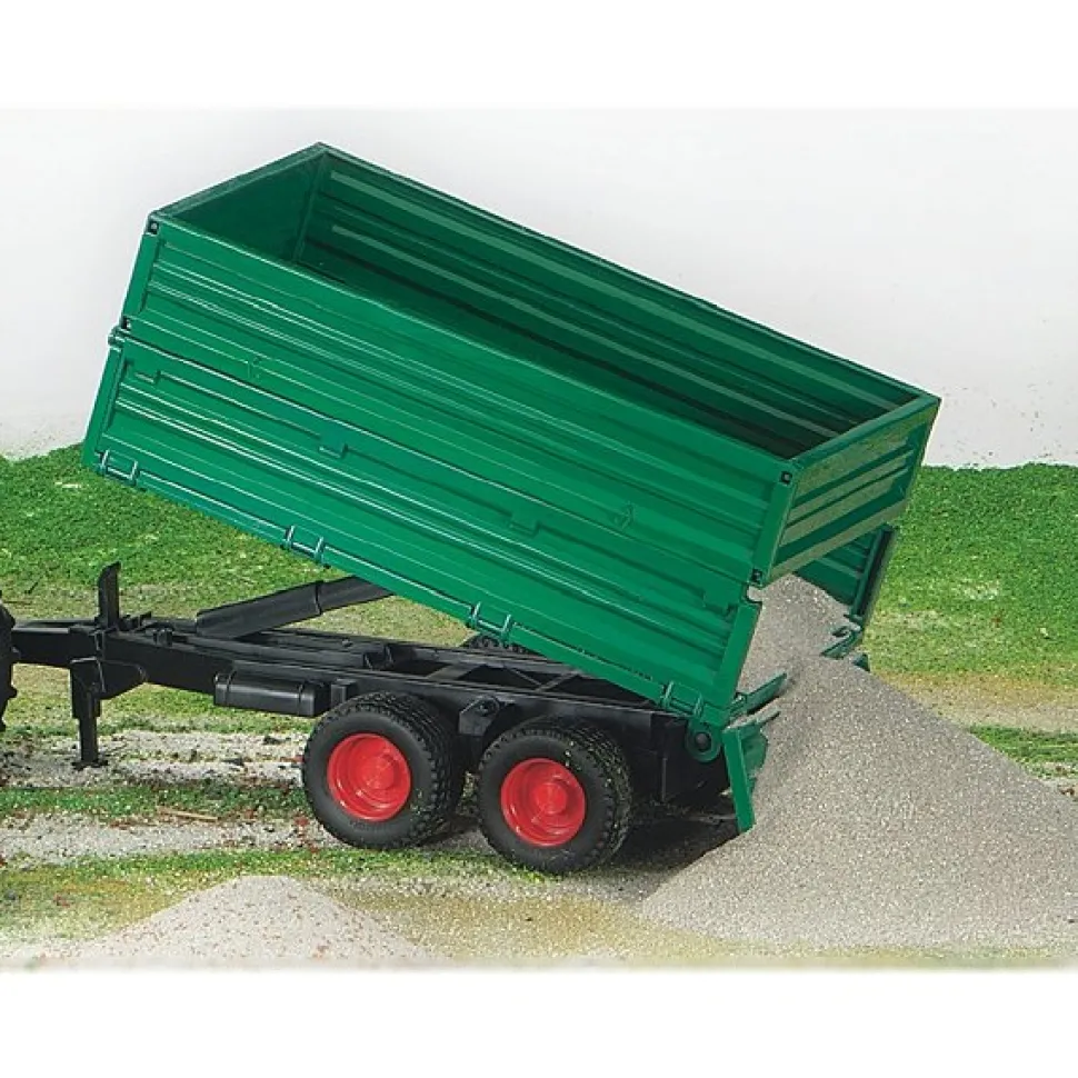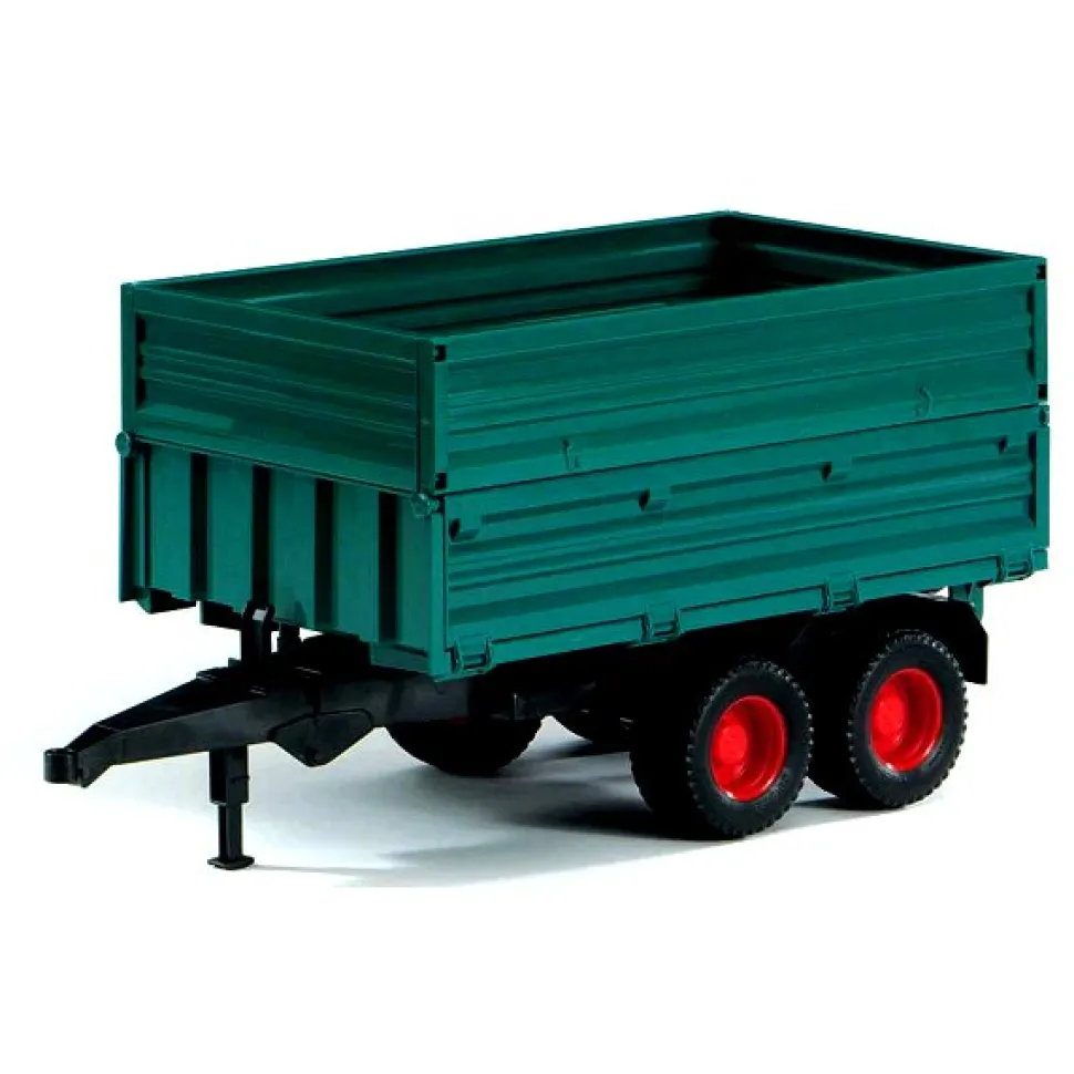 Remorque basculante avec stabilisateur au niveau de l’attelage. La porte arrière s’ouvre pour permettre l’épandage de l’engrais. Les parois du niveau supérieur sont amoviblesDimensions : 37 x 16.5 x 18 cm.
