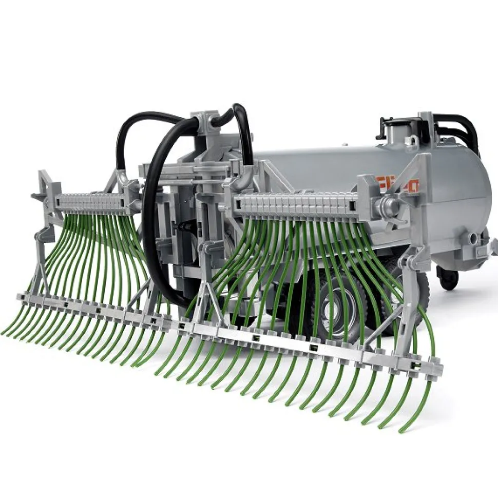 Cette remorque Fliegl avec tubes d’épandage peut être remplie d’eau. Une fois le couvercle, l’écoulement se fait par les tuyaux arrière. Compatible avec tous les tracteurs Profi-Serie à l’échelle 1/16.Dimensions de la remorque : 41.5 x 48.4 x 19 cm.