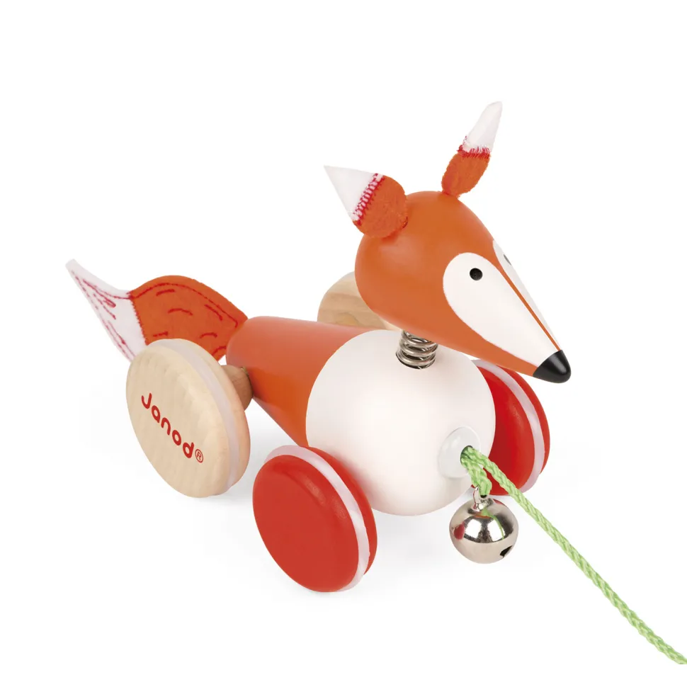 Ce joli jouet en bois ravira vos enfants qui s’amuseront à promener cet animal forestier ! Votre enfant prendra votre maison et votre jardin pour une grande forêt. Les roues en bois sont robustes et résisteront aux obstacles par lesquels vos enfants vont faire passer son animal préféré. Sa tête sur ressort bougera dans tous les sens et amusera vos enfants ! Une petite clochette est accrochée à la cordelette qui tire le renard. Vous ne pourrez donc pas le perdre et l’entendrez arriver de loin. Les proies pourront ainsi vite s’échapper et vivre paisiblement dans leur maison. Les couleurs vives et le design amusant de ce jouet attireront tous les enfants qui seront heureux de faire de ce renard leur compagnon de jeu et de promenade préféré. Contient :- 1 renard à tirer- 1 cordelette- 1 grelot