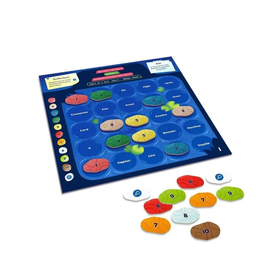 Pour les placer, les joueurs doivent trouver des couples de mots obligatoirement alignés. Chaque couple de mots amène par ricochet (association d’idées) au couple de mots suivant, jusqu’à ce que tous les galets soient posés.