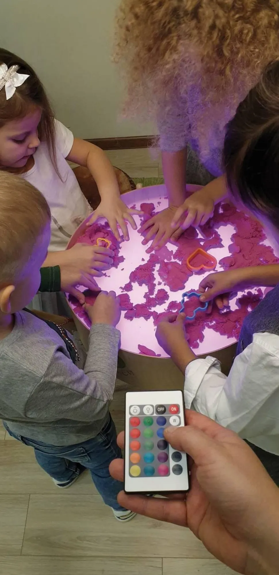 … Le sable mouvant ne fait pas de poussière, ne s’effrite pas, est prêt à être modelé et ne sèche jamais. Grâce à son liant, le sable possède des propriétés cinétiques : il coule et se tient en même temps, et ne colle ni aux mains ni au sol. Les enfants peuvent le pétrir, le modeler et en faire des galettes de sable stables. Cette activité silencieuse a un effet relaxant, stimule la motricité fine et permet de jouer dans le sable, même à l’intérieur les jours de pluie.