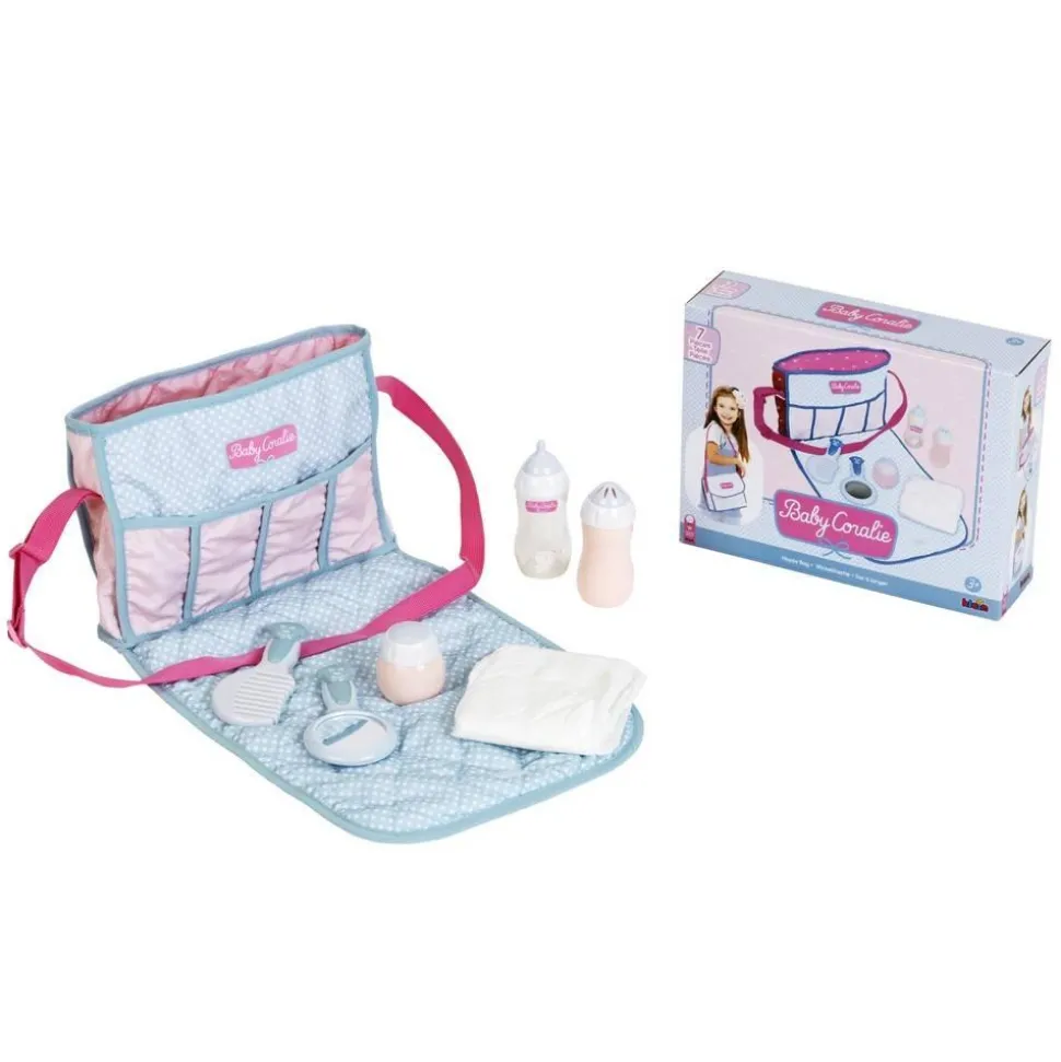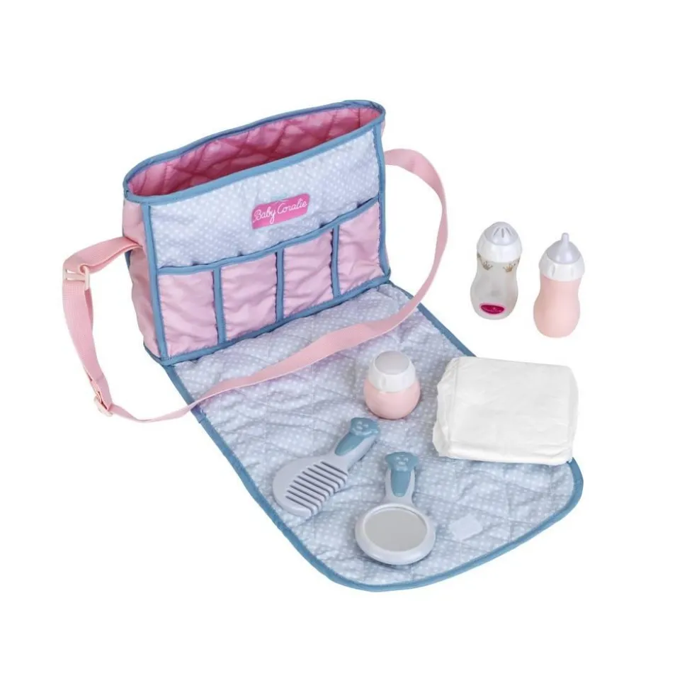 Pour partir en voyage ou dans vos déplacements, votre poupée aura elle aussi le confort du sac à langer lorsque vous devrez la changer ! Fourni avec de nombreux accessoires de puériculture : biberon, brosse, peigne, couche et flacons de produits cosmétiques factices. Convient aux poupées de 40 à 50 cm. Dimensions de la boîte : 26 x 20 x 7 cm.
