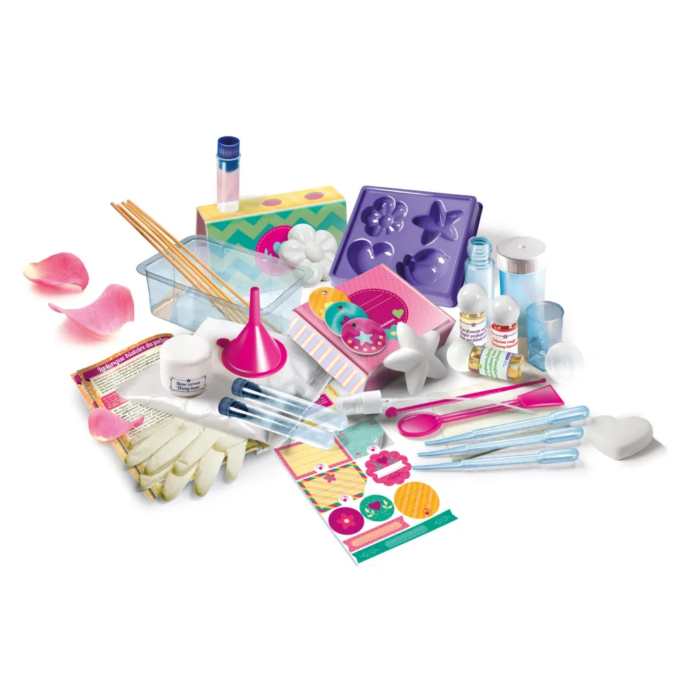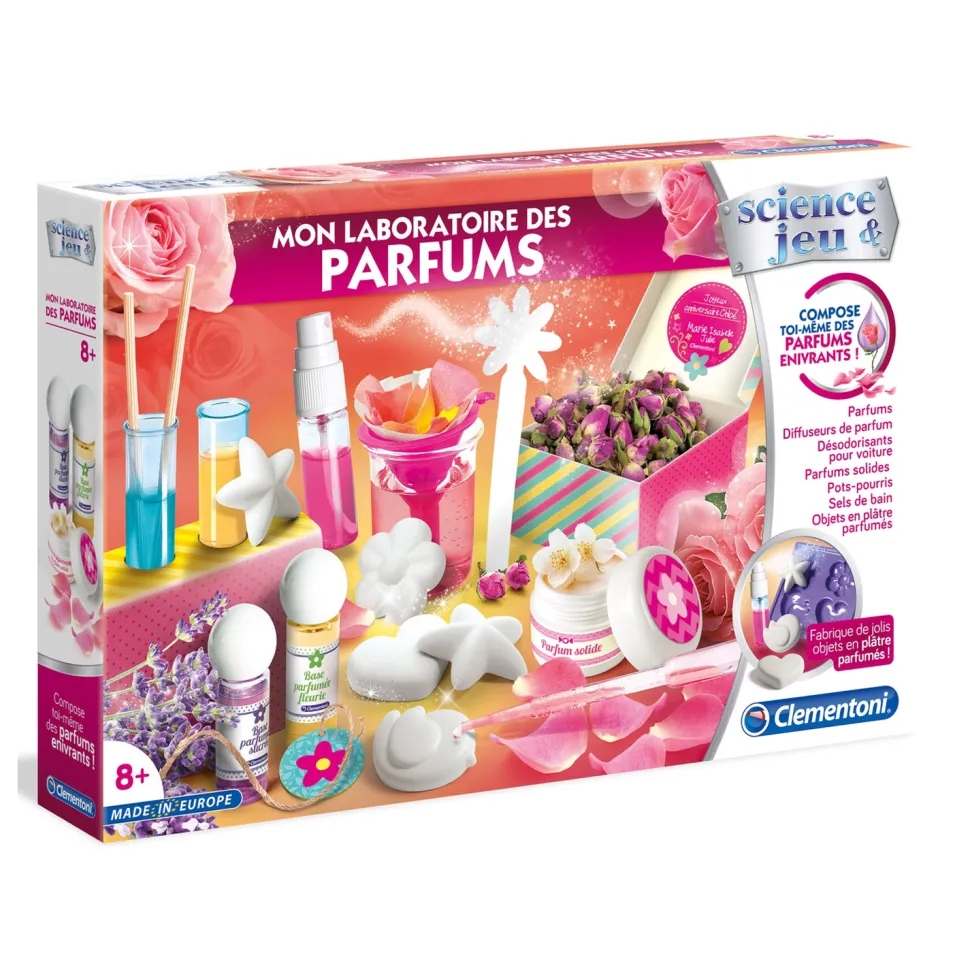 Devenez une célèbre créatrice de parfum grâce à ce coffret Science et jeu : Mon laboratoire des parfums.Le kit contient des essences et des ingrédients pour stimuler la créativité des enfants.Contenu de a boîte : – Base parfumée fleurie- Base parfumée sucrée- Une spatule- Une pipette- Un colorant rouge- Un verre gradué avec couvercle de 50ml- Un verre de 30ml- Une éprouvette – Un agitateur- Un entonnoir- Un flacon vaporisateur- Un papier-filtre- Une base de cire- Des cartons pour testeur- Des bâtonnets en bois pour diffuseur- Des Autocollants- Des gants en latex- Un sachet de plâtre- Un moule pour les objets en plâtre- Une cuvette- Un support à éprouvette- Une boite en carton- Un manuel illustréDe nombreuses activités amusantes sont proposées et détaillées dans le manuel qui guidera l’enfant dans la découverte de la science des parfums .