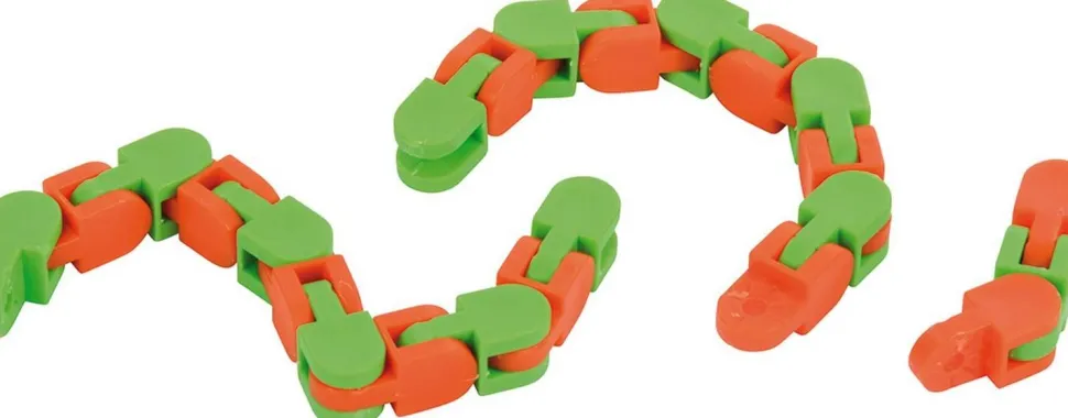 Droit, courbé, en forme d’anneau, torsadé, coupé en deux… Ce serpent sans fin à 24 maillons permet de créer de nouvelles formes à l’infini. Vous pouvez également joindre les extrémités ou diviser le serpent en plusieurs morceaux. Et bien sûr, plusieurs serpents peuvent être reliés pour former un très long serpent. Ce jeu favorise le développement de la concentration, de la motricité fine et de la créativité. Matériau : matière synthétique. Dimensions : 28,5 x 0,9 x 0,9 cm. Âge : 3 ans.