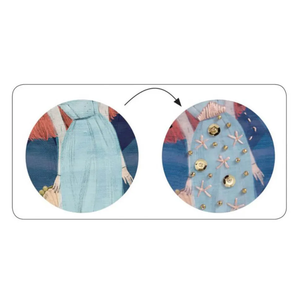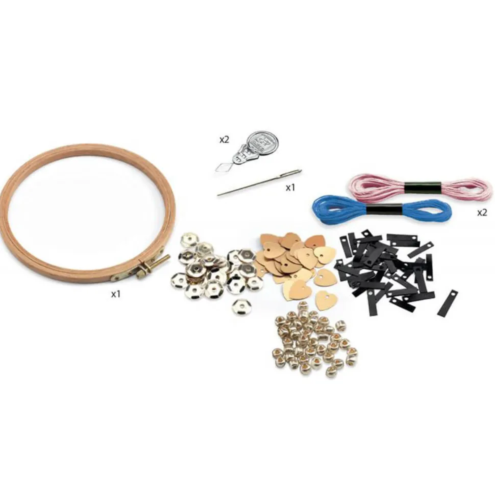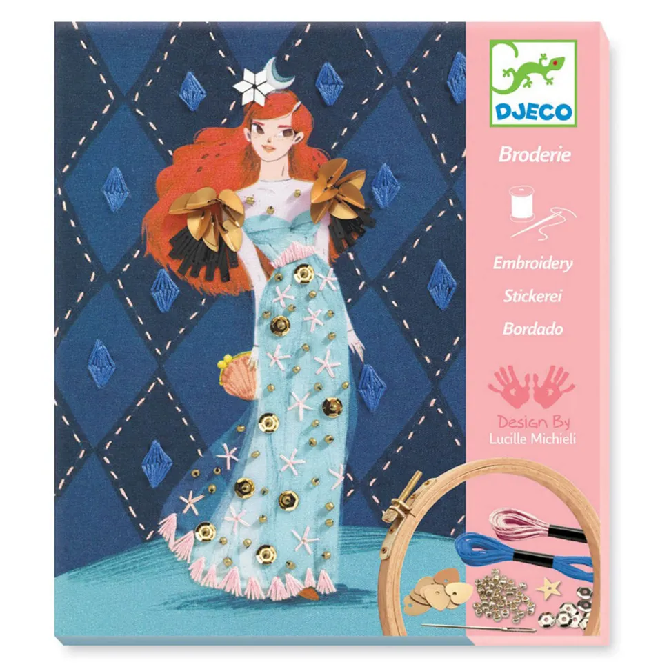 Un kit d’initiation à la broderie très tendance, idéal pour celles qui s’imaginent déjà en couturière !Contenu :- 1 pièce de tissu illustrée- 1 tambour à broder- 2 passe-fils- 1 aiguille- 2 échevettes de fil coloré – des accessoires : sequins et perles- 1 livret pas à pasCe kit créatif, imaginé par Djeco, propose de découvrir l’art de la broderie à travers une activité ludique consistant à broder les parties d’une toile. Pour cela, le tissu est pré-imprimé de façon à guider l’enfant dans sa réalisation. Il devra alors le placer sur son tambour à broder et enfiler le fil de couleur dans l’aiguille, puis se lancer pour agrémenter la robe du personnage de sequins et de perles. Le rendu de la toile avec les accessoires en volume sera magnifique !Dimensions de la boîte : 21 x 24 x 2.5 cm.
