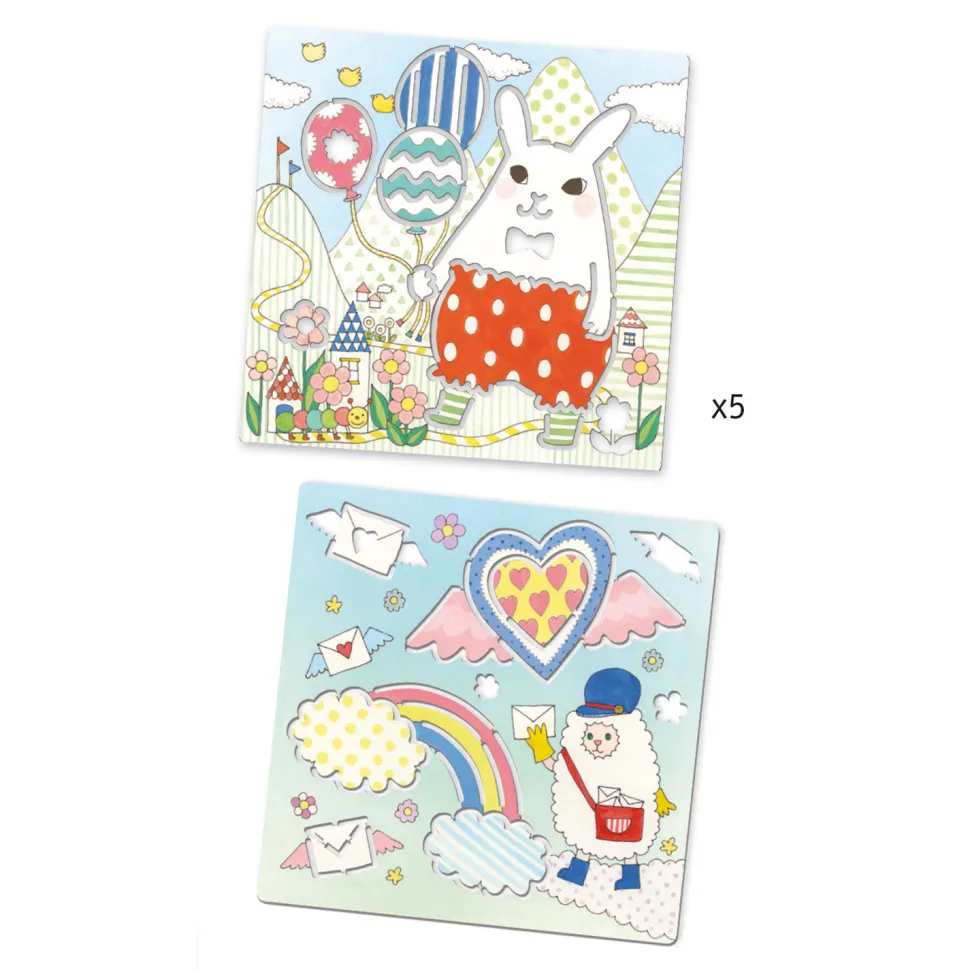 Description du produit : Set de 5 pochoirs : Kawaïland