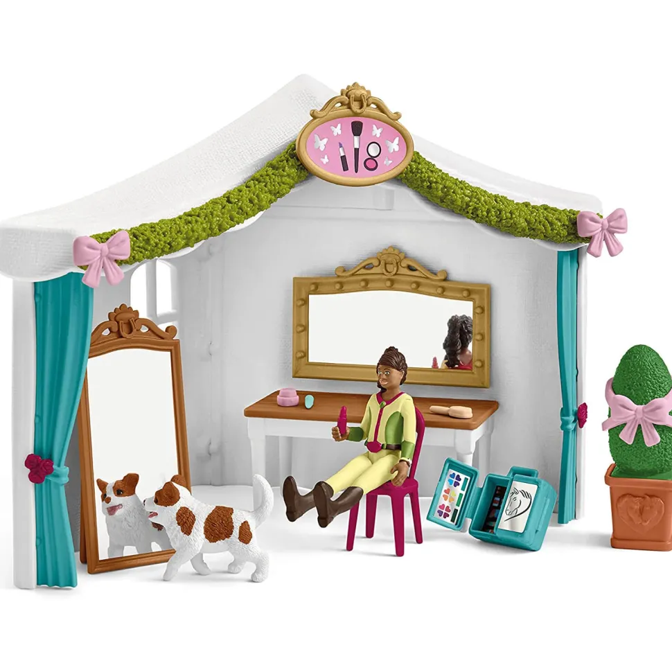 Pour le grand spectacle équestre du Horse Club de Schleich®, Sarah et Tori parent leur cheval de fleurs, de coeurs et de noeuds.