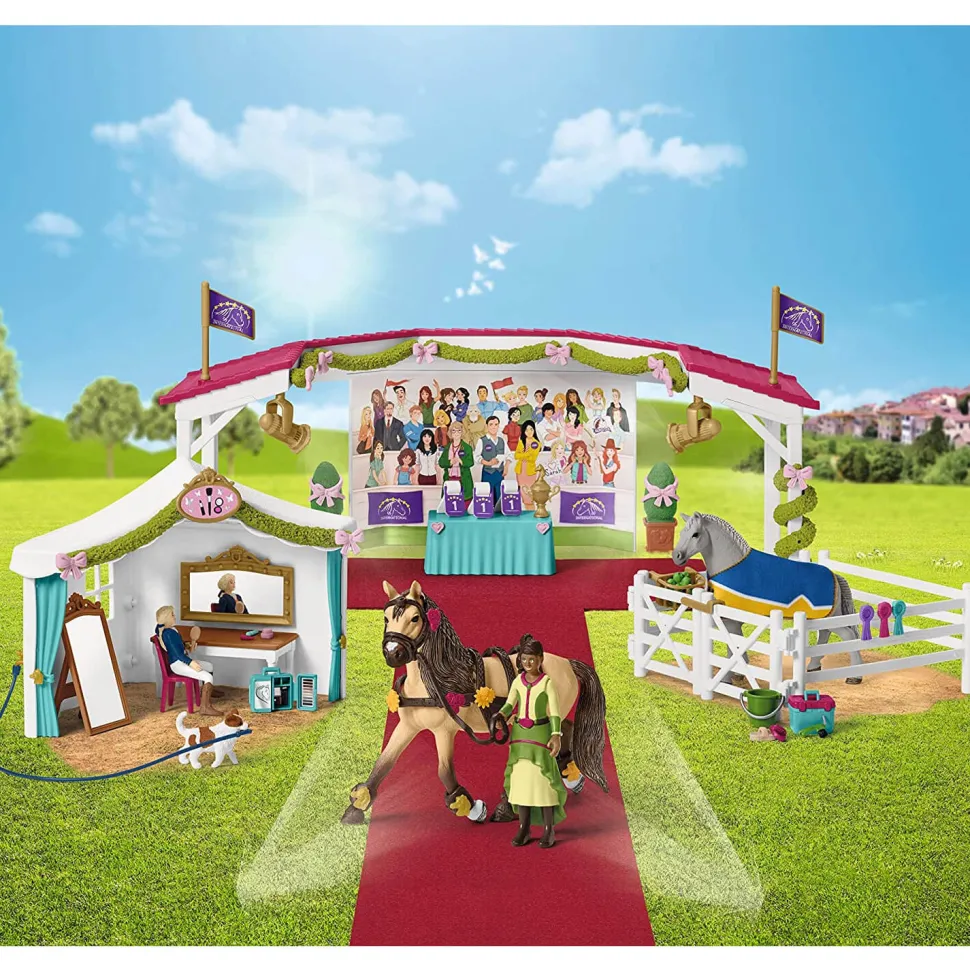 Complétez votre collection de figurines Horse Club de Schleich et imaginez de nombreuses acrobaties à cheval avec ce set de jeu Grand spectacle équestre.