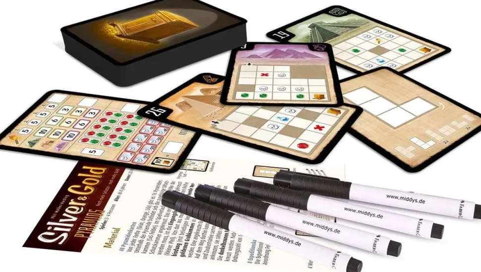 Grâce à un simple mécanisme de « draw & write » (piocher des cartes et dessiner des formes), vous devrez explorer des pyramides, récolter des pierres précieuses et atteindre la chambre funéraire, en accumulant le butin le plus précieux, sous le principe « Encore plus de trésors, encore plus d’or ».