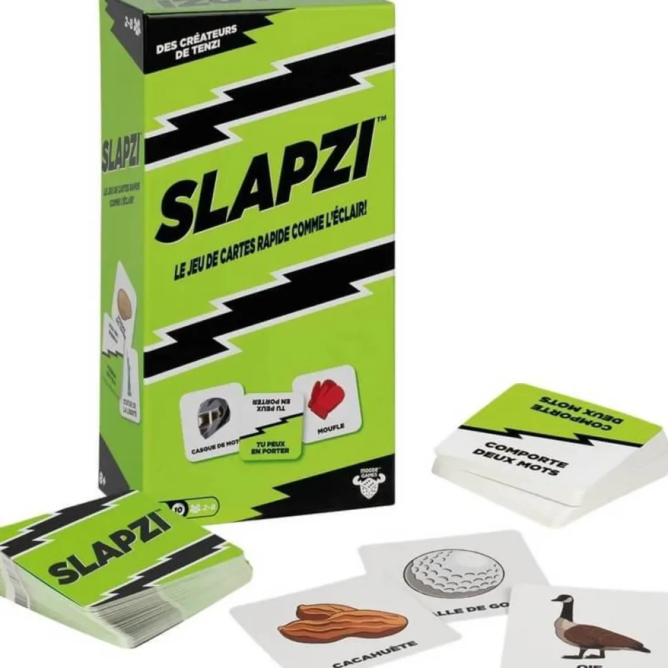 Slapzi de la marque Asmodée est un jeu d’observation, de réflexion et de rapidité palpitant qui promet des parties dynamiques et pleines de rires. Chaque joueur reçoit 5 cartes représentant des objets variés qu’il dispose face visible devant lui. Au centre de la table se trouve une pioche de cartes Indice. À chaque tour, la première carte de la pioche est retournée et dévoile un nouvel indice, tel que : ‘c’est rond’, ‘ça a des dents’, ‘son nom est composé d’un nombre pair de lettres’, et bien d’autres. Tous les joueurs, en même temps, observent leurs cartes pour déterminer s’ils possèdent un objet correspondant aux critères de l’indice. Si vous êtes le plus rapide à poser une carte qui respecte parfaitement l’indice, vous vous débarrassez de cette carte. Attention : si votre proposition est discutable ou incorrecte, vous recevez une carte supplémentaire en pénalité ! Le but du jeu est d’être le premier joueur à se débarrasser de toutes ses cartes objets. Pour encore plus de fun, Slapzi propose plusieurs variantes de règles, telles que Double Slap It, Opposés, Deux choix, ou encore Tordu, pour renouveler sans cesse les défis et l’ambiance autour de la table.