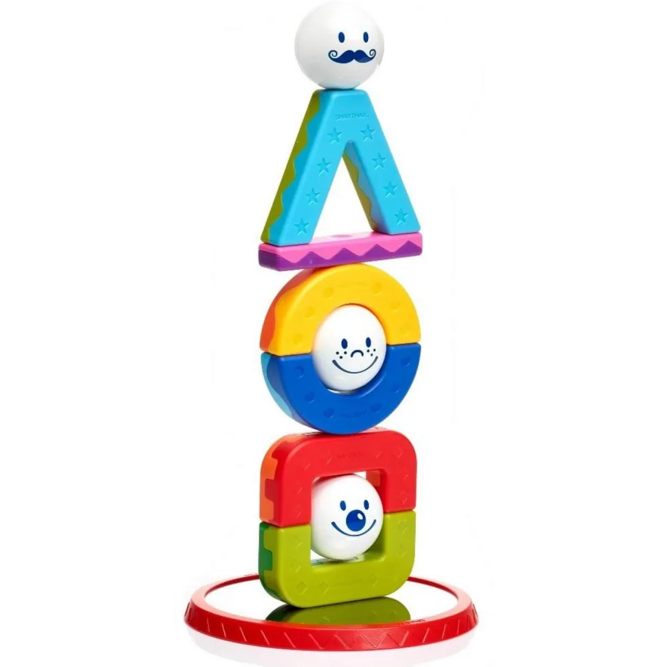 Avec 6 formes multicolores, vous pouvez construire un carré, un triangle et un cercle. Lorsque vous mélangez ces formes et ajoutez les boules de métal, les figures acrobatiques les plus cool apparaîtront. Créez vos propres structures acrobatiques ou essayez de construire la structure comme indiqué sur les fiches défis. La base rouge contient une surface métallique qui donne la stabilité nécessaire pour construire les structures acrobatiques.