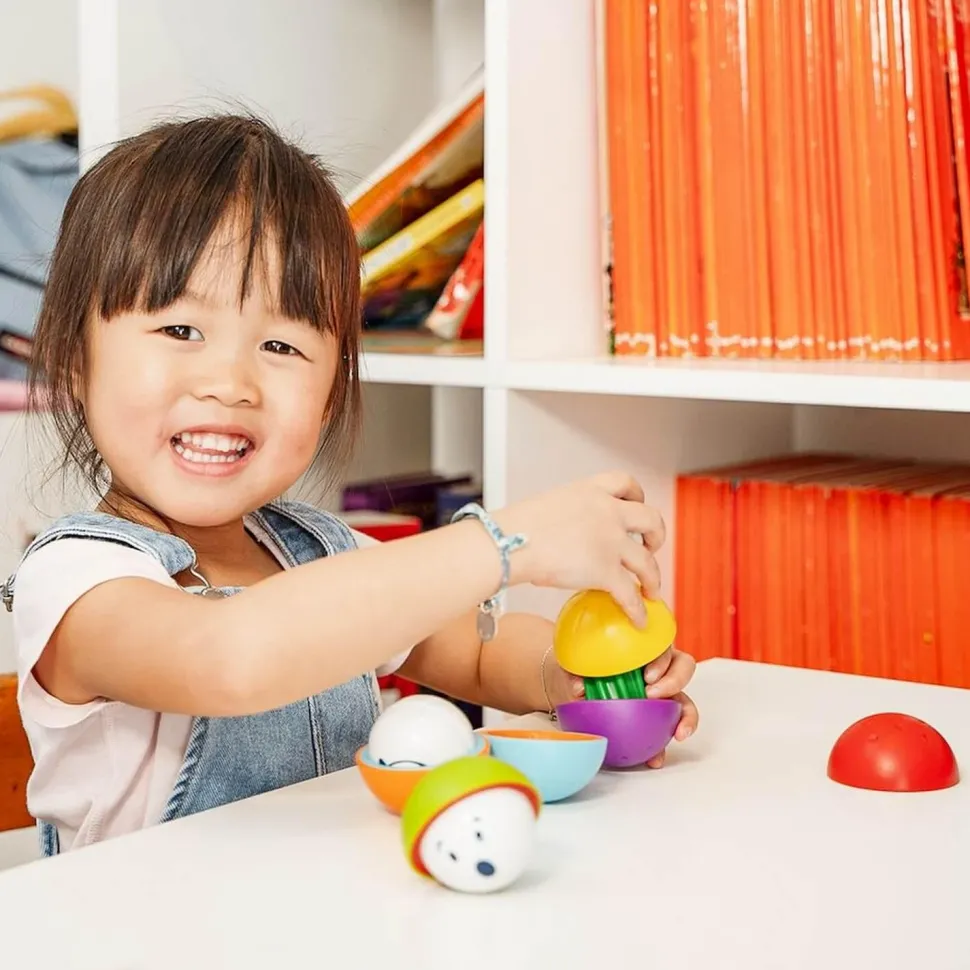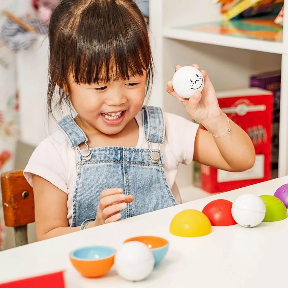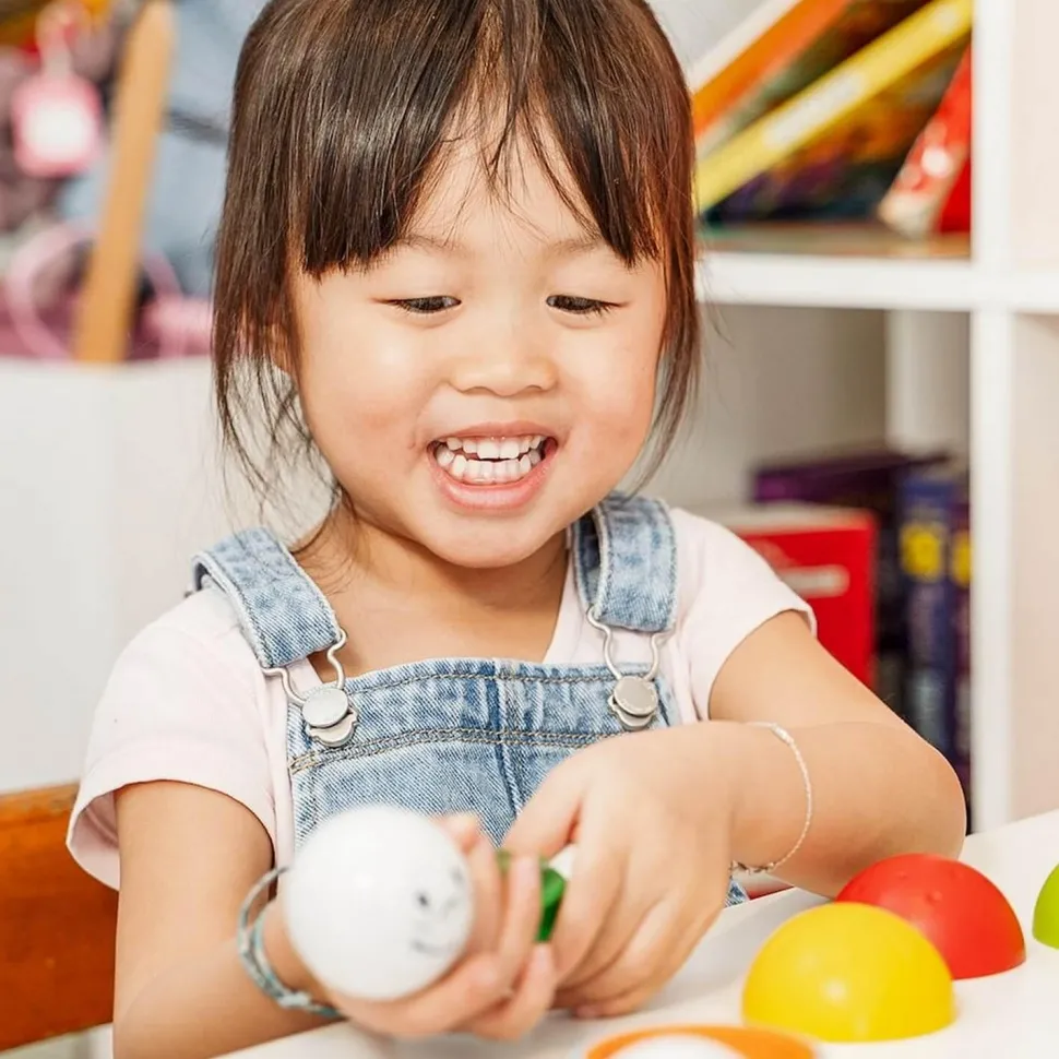 Essayez d’empiler les pièces aimantées ou jouez une partie de cache-cache avec ces boules aux drôles de visages ! Découvrez les couleurs et les formes. Un jeu amusant pour entraîner la motricité fine et la coordination œil main.